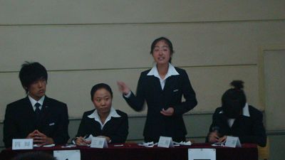 通过整个08级范围内选拔赛的激烈角逐,十六名优秀辩手脱颖而出。他们组成了四支辩论队,经过为期两周的集中培训,其能力和技巧都有了相当程度的提高。他们用自己突出的表现为在场的老师和观众们奉献了两场精彩的辩论赛。