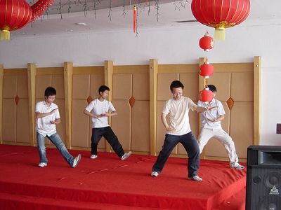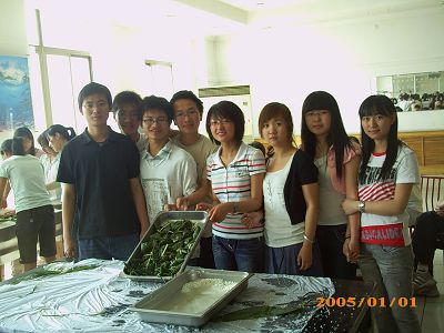 在聚会上,马老师和事先分好组的同学们兴致勃勃地包起粽子。在包粽子上,虽然大家基本上都是新手,每个人的粽子可谓“粽型各异”,不同于传统的粽子,但大家从动手的过程中体验了无尽的快乐。一盆盆粽子下锅后,大家在等待中表演起了节目,武术、太极、歌曲、笑话先后演出,精彩的节目和开心的游戏使活动高潮迭起,大家你方唱罢我登场,餐厅成了一片欢乐的海洋。不知不觉一个多小时过去了,我们的粽子终于隆重登场,同学们围坐在一起开心地品尝着自己的劳动成果,吃得不亦乐乎。