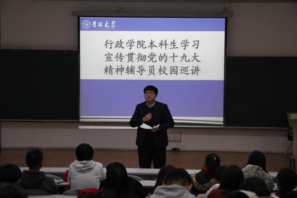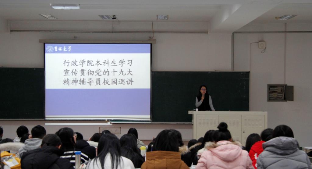 本科生学习宣传贯彻党的十九大精神辅导员校园巡讲曁2017级本科生年级大会于中心校区第三教学楼第九阶梯教室举办。成人导航