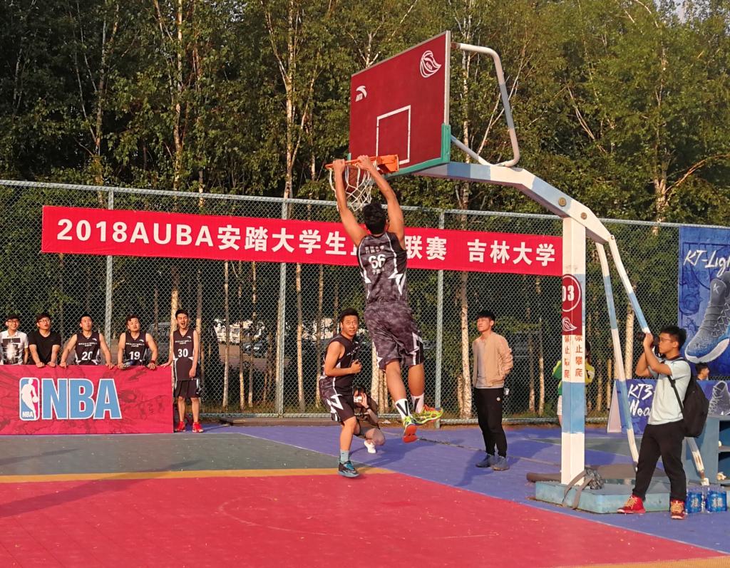 2018AUBA篮球联赛在中心校区行政楼前的篮球场又一次拉开序幕,行政男篮迎来了第三场比赛,与艺术学院男篮角逐胜负。