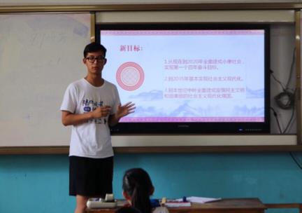 支教团在支教期间积极与当地政府和学校展开合作,开展党的十九大精神宣讲活动。致中支教团遵义分队积极参与到分水镇精准扶贫政策宣讲系列活动中,在分水镇镇政府的指导和支持下,所开展的“分水镇易地扶贫搬迁户后扶之思想训导会”成为分水镇易地扶贫宣讲系列活动的重要组成部分,为分水镇扶贫攻坚工作做出了贡献。合美支教队为六年级的学生们讲了一节特殊的课——《赤子心向党,共建新时代》党的十九大主题班会。队员们以电影《厉害了,我的国》片段开头,让大家感受中国力量。接着对党的十九大精神进行了讲解,带领学生们重温了社会主义核心价值观,启发学生们要勇敢地将自己的梦想融入国家“两个一百年“的奋斗目标中。