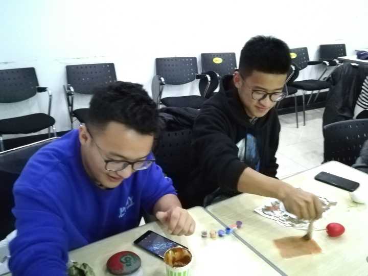 中心校区经信教学楼C101室举办了以“心系耄耋花甲,爱让石头开花”为主题的石头画志愿活动。本次活动由1班团支书吕雨函主持,1班部分同学及招募的志愿者们参加了此次活动。