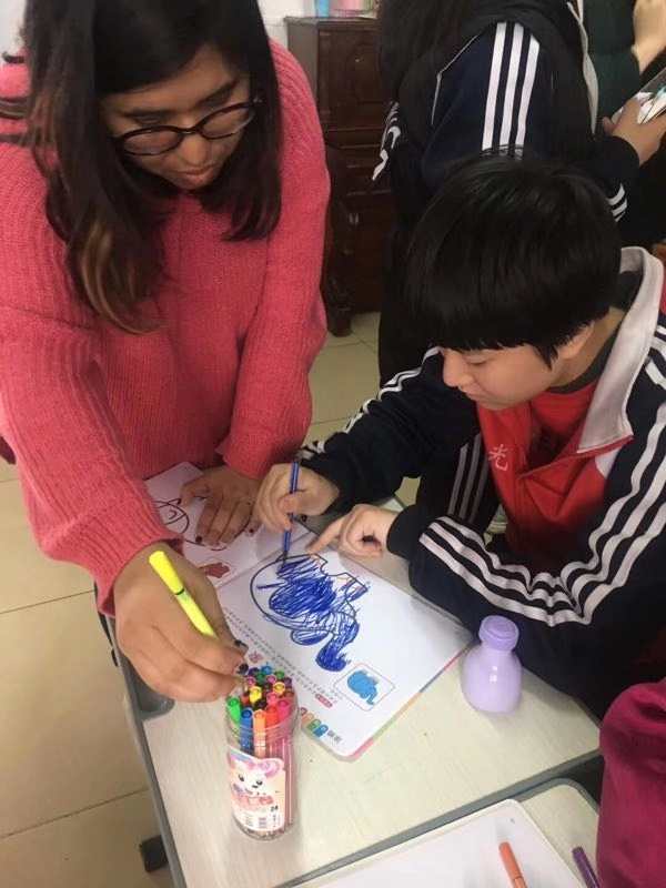 志愿者们耐心的陪着孩子们进行康复训练,配合老师进行授课教育。有了在星光教育的经历,在永康展开的各类活动和授课也更加富有经验。