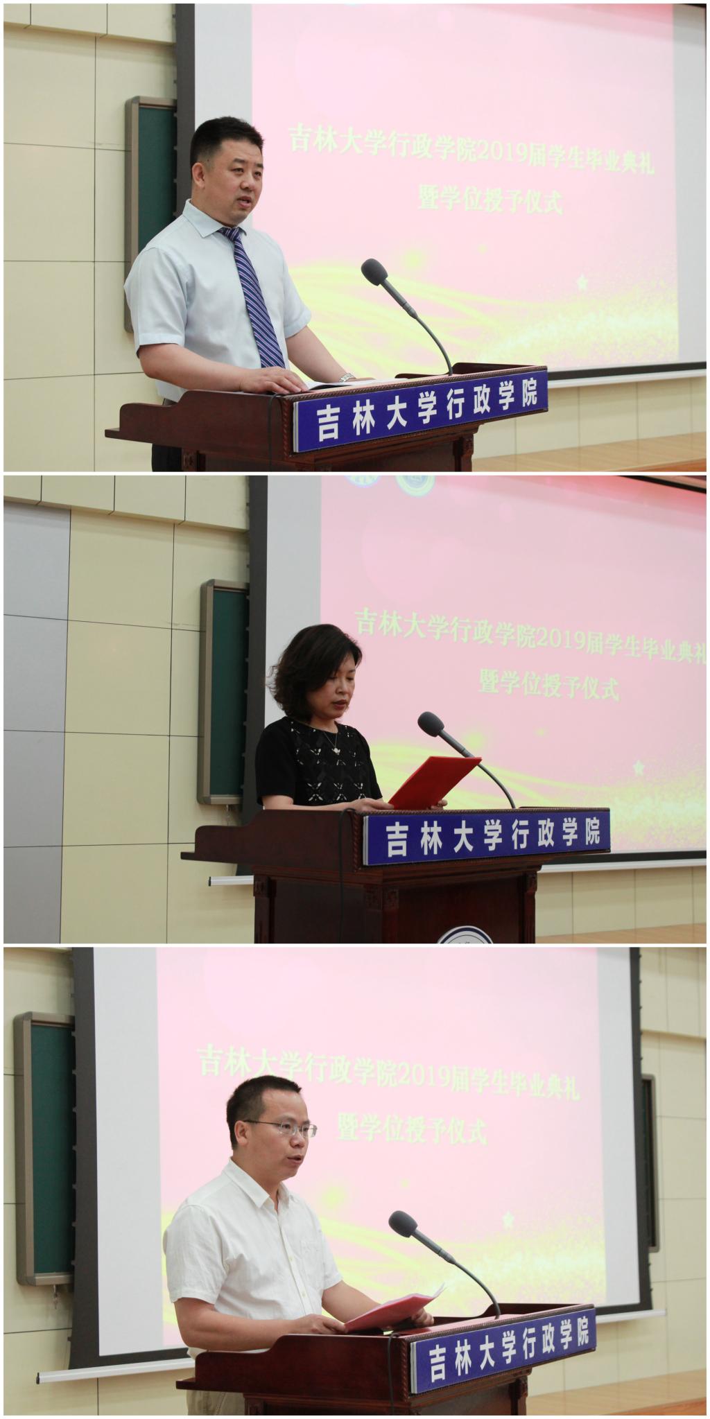 党委书记魏鹤影研究员、党委副书记常有余老师、副院长许玉镇教授、副院长殷冬水教授、副院长于海洋教授、廉政研究与教育中心行政副主任密佳音老师等学院领导、学院教师代表等。毕业典礼由学院副院长范斌老师主持。