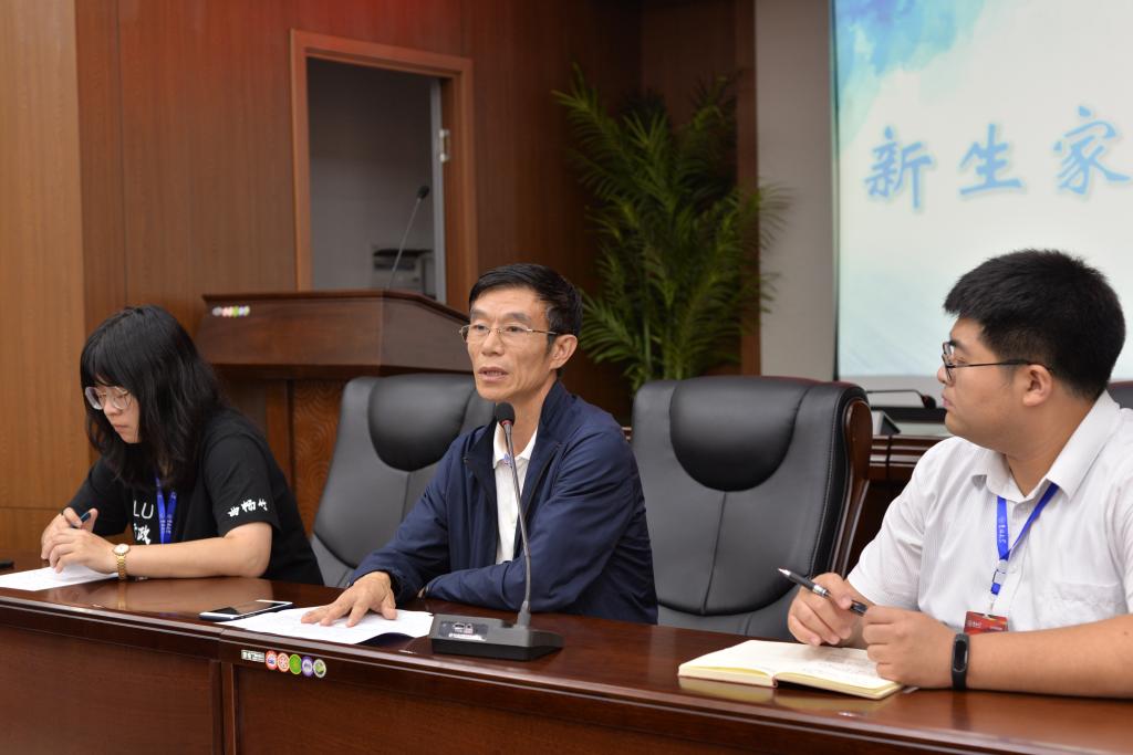 会议伊始,常有余从学科建设、师资队伍、人才培养、学术交流等方面向家长详细介绍了学院的基本情况,展现了我院各项工作蓬勃发展的良好风貌。之后他就家长关心的学生毕业去向、升学情况、奖助学金等事宜进行了深入介绍。刘洋、曲畅竹就上述内容补充了有关细节。随后,担任2019级本科生辅导员的刘洋对会前新生家长们普遍关心的问题作了答复。