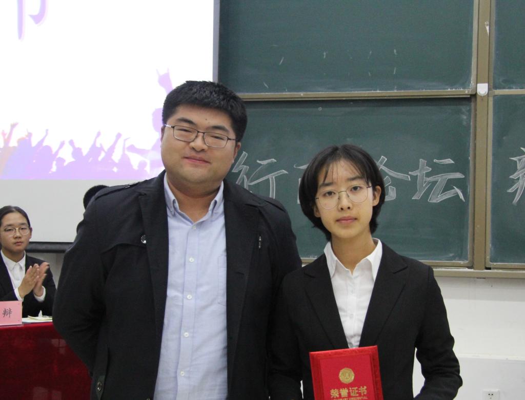 本次比赛的辩题是“自学能力强的人可不可以不受课堂考勤的约束”。围绕辩题,正方代表队(2019级本科生江禹熹、石雨、孙泽文、王馨雨)从特殊型人才的个性需求切入,表达了对更加柔性、更加高效的制度的期望;反方代表队(2019级本科生杨汝嘉、孟子涵、孙楚涵、汤沁)则从课堂的重要性、制度的合理性、学生的个人发展等角度出发,阐述了考勤约束的必要性。双方深入浅出、针锋相对、舌灿莲花,展现了行政学子缜密的思维逻辑与流畅的语言表达能力。最后,于海洋老师对本次辩论赛作了精彩点评,从制度的合理性、延续性、可操作性等方面对辩题作出了深刻解读。比赛结果出炉,反方辩手们以其更为严密的逻辑推理和精彩的现场展示取得了本次辩论赛的最终胜利,反方二辩杨汝嘉同学也凭借其精彩的表现获得了“最佳辩手”的荣誉称号。
