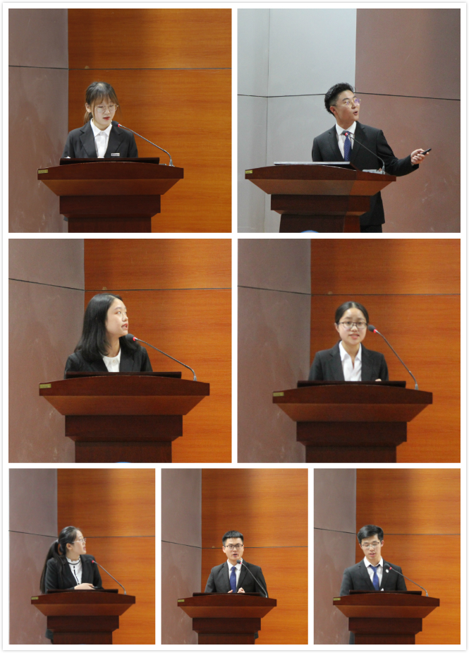 七支队伍先后通过“市长”个人展示、团队情景模拟、集体答辩的环节展现了各队的独到思考与研究成果。参赛队伍聚焦“社区生活空间”、“防沙治沙”、“猪肉保供稳价”、“垃圾分类”、“人才政策”、“资源衰退型城市的发展路径”、“互联网+”等议题。参加决赛各队的选题立足现实,探索城市治理之道,获得了评委老师的一致认可。
