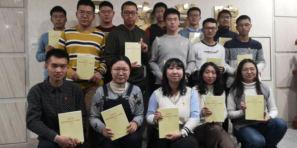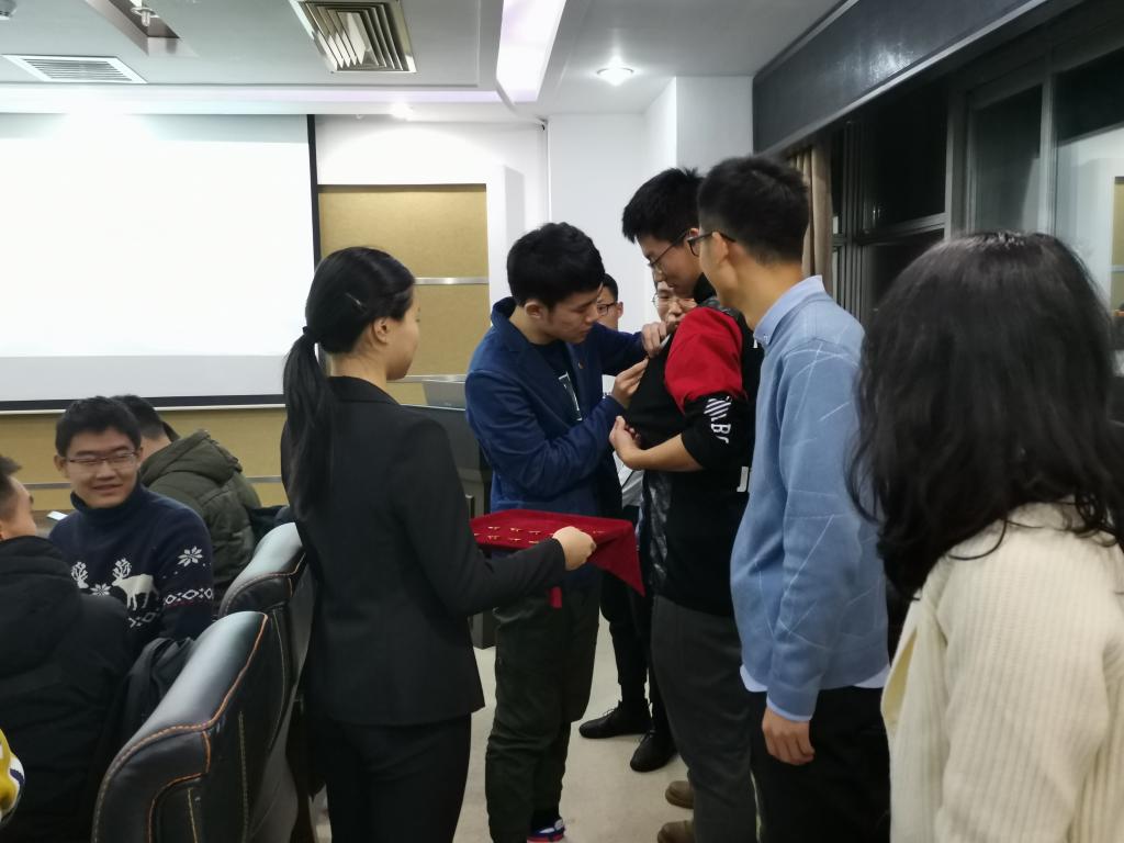 仪式伊始,宋志浩(2016级本科生)结合自己在全国政协的实习经历告诉学员们如何用信仰赋能、为理论拆封;王世亨(2017级本科生)向学员介绍了青年学习班的初心与学习内容,并结合自身经历讲述了如何做一个有觉悟的社会主义事业的建设者;朱鸿(2018级本科生)通过对党的十九届四中全会政策的解读带领大家学习党的十九届四中全会精神;王馨瑶(2018级本科生)从“求实思源、服务社会”计划的实践经验中阐述了青年人应有的使命与担当。认真聆听完四位的分享之后,学员们纷纷表示受益匪浅。接着,学习班成员们以被授予团徽、共同宣读入团誓词的形式重温入团仪式。最后,宋志浩和王世亨向学习班的新学员们赠送《习近平新时代中国特色社会主义思想三十讲》,激励学员们不断学习先进思想、锐意进取。