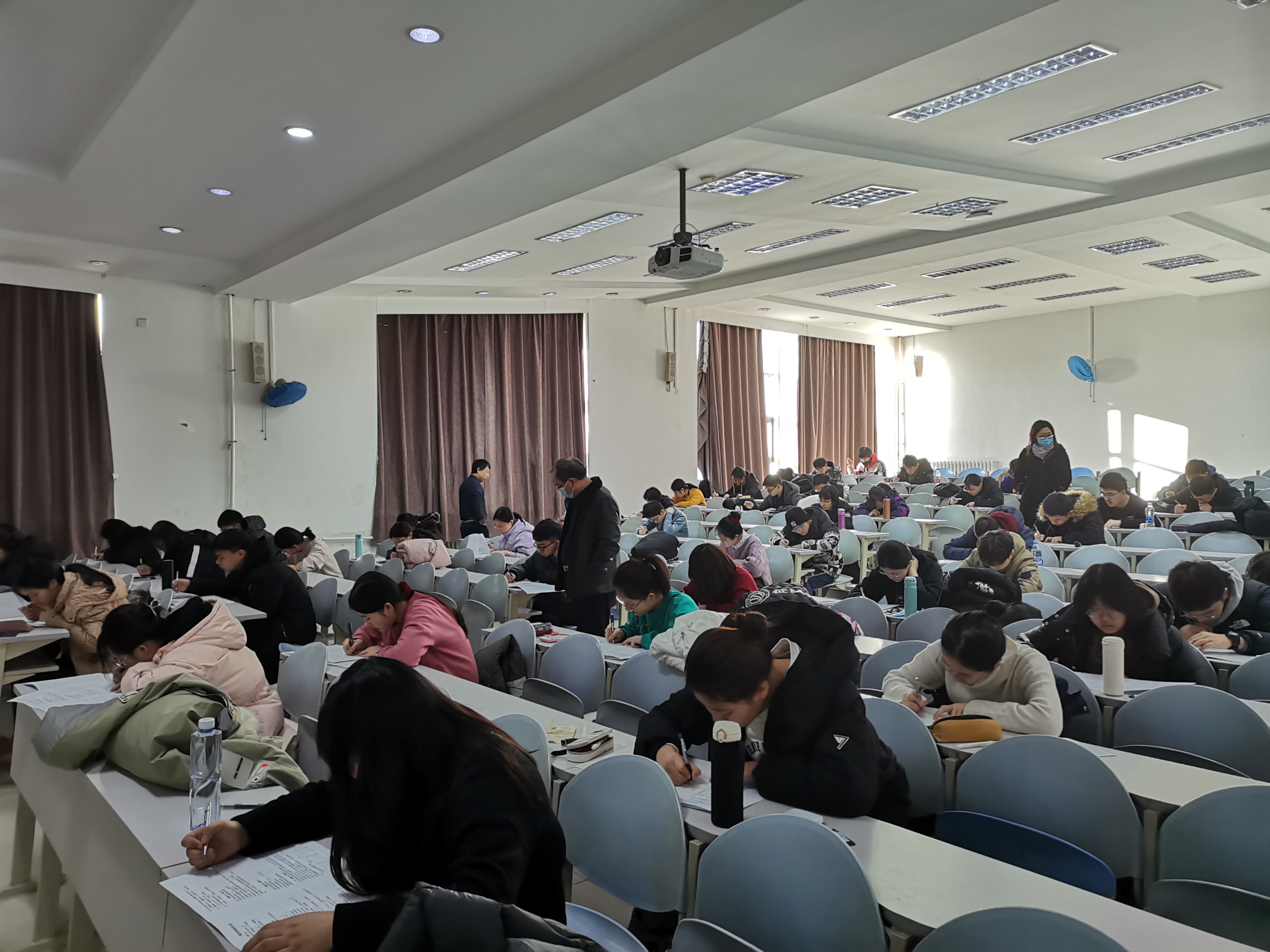 为深入贯彻落实我校期末考试工作及考风教育布置会精神,进一步严肃考风考纪,根据学院期末考试的相关安排和学风建设的具体要求,成人导航 院长张贤明、党委副书记兼副院长史慕华、教学办公室主任连永超、学生工作办公室主任刘洋、本科生辅导员孙月,于1月7日上午,来到中心校区第三教学楼对我院本科生3个考场进行了巡考。