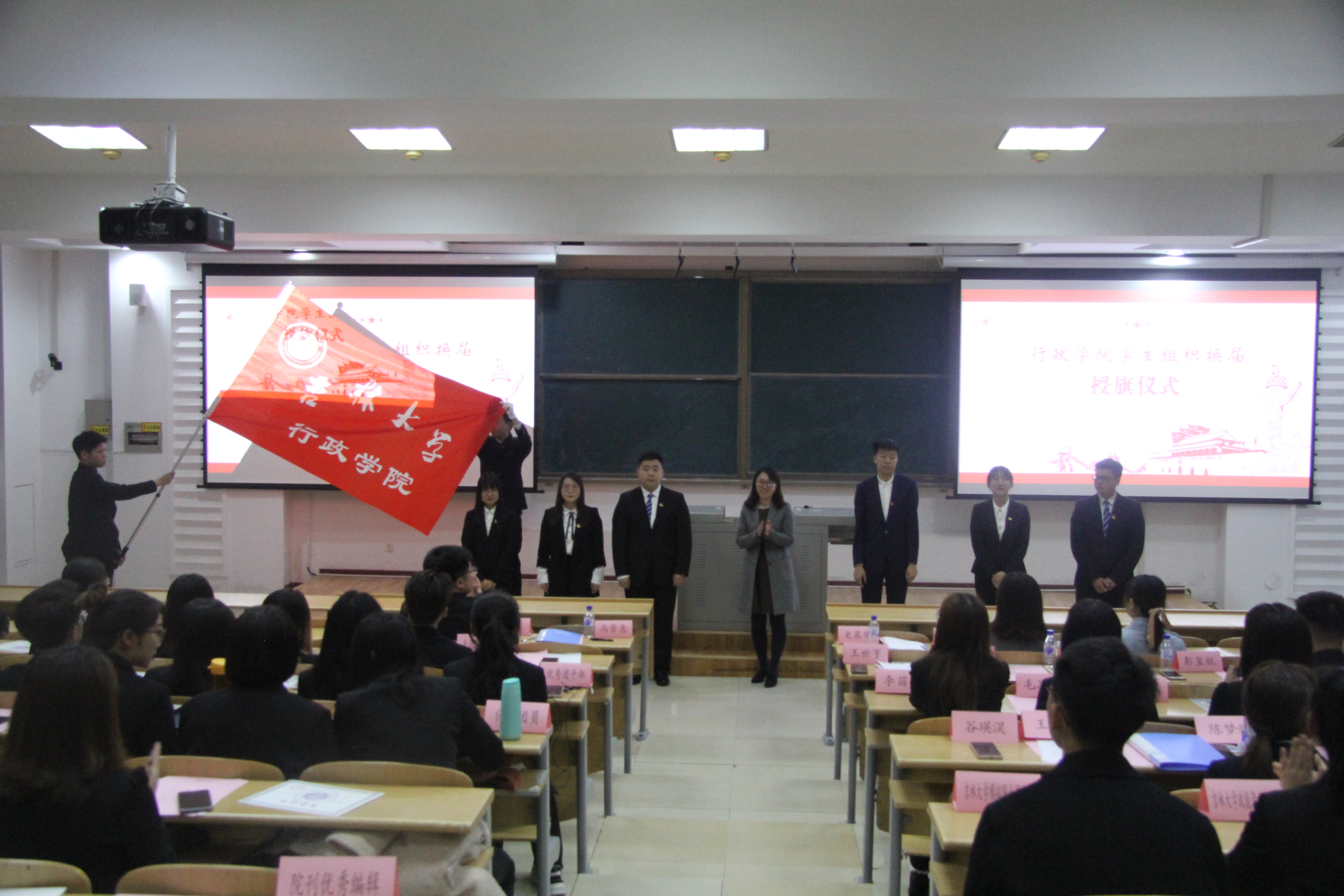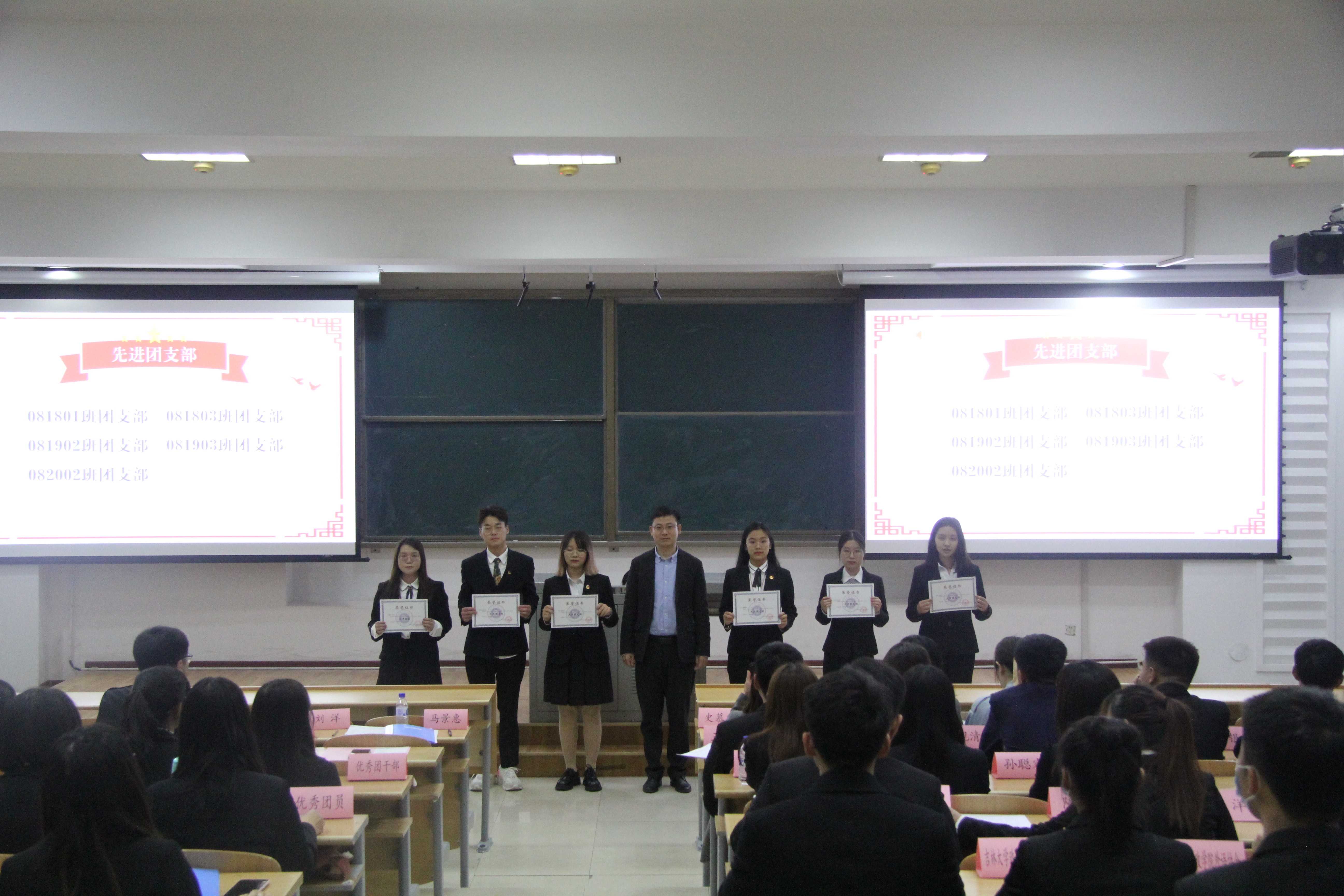2020-2021学年五四青年节表彰大会暨学生组织成立大会在经信教学楼第八阶梯教室隆重召开。院党委书记马景惠,党委副书记史慕华,学生工作办公室主任刘洋及本科生辅导员孙月出席大会。