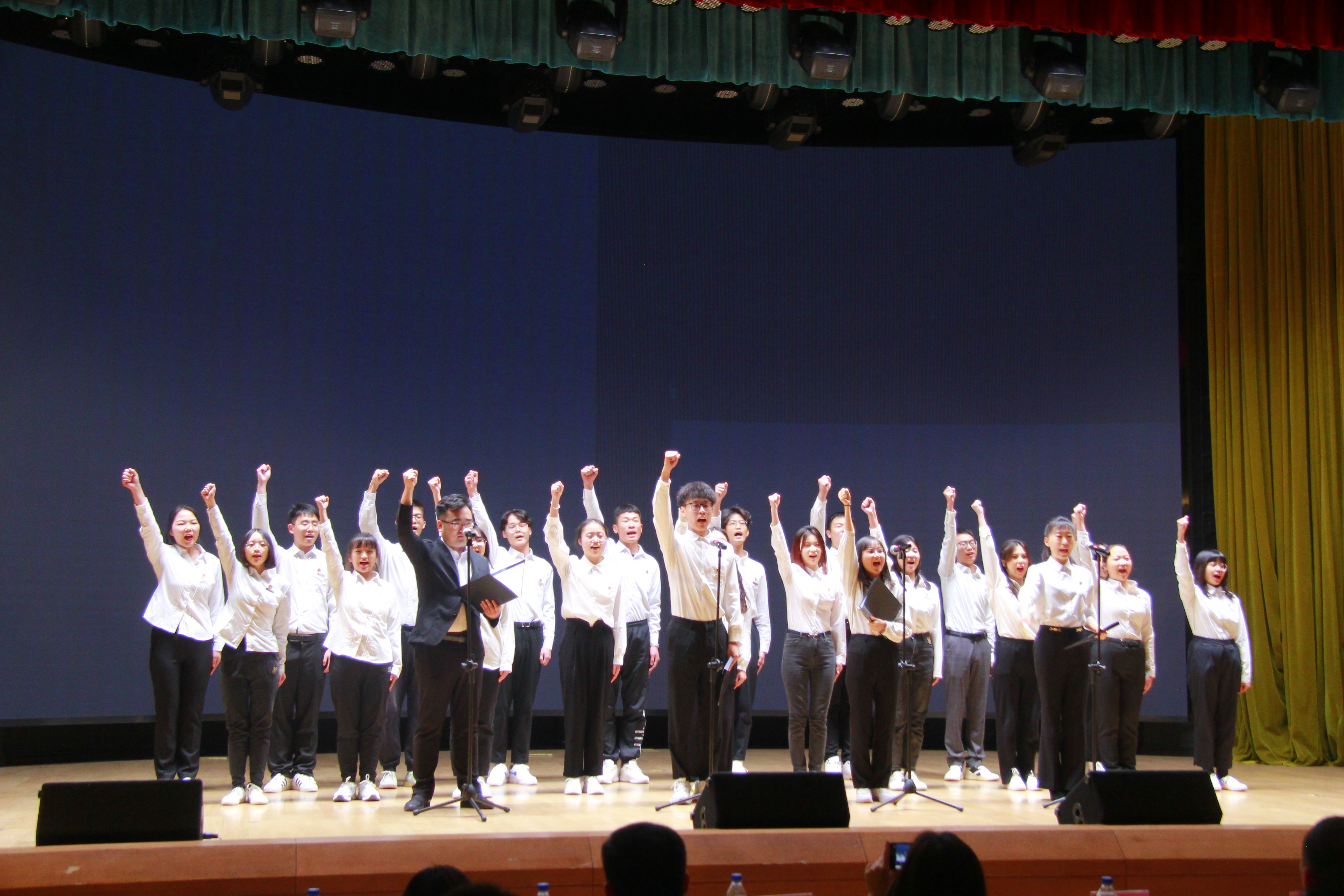 本次比赛分为合唱比赛和朗诵比赛,合唱比赛以班级为单位组队,朗诵比赛自由组队,表演队伍共20组。晚18时,比赛正式拉开帷幕。各班各组循次登场,比赛过程精彩纷呈。合唱比赛中,行政学子将满腔家国情怀融入歌声,一曲曲动人的乐章,让人激情澎湃,陶醉其中。合唱比赛告一段落,朗诵比赛再一次把全场的气氛推向高潮。舞台上,朗诵者激情昂扬、感情恳切,抒发报国情、强国志,以声音震撼着每一个人的心灵。在同学们的精心编排和准备下,为大家呈现了一场美妙绝伦的视听盛宴,博得现场阵阵掌声。