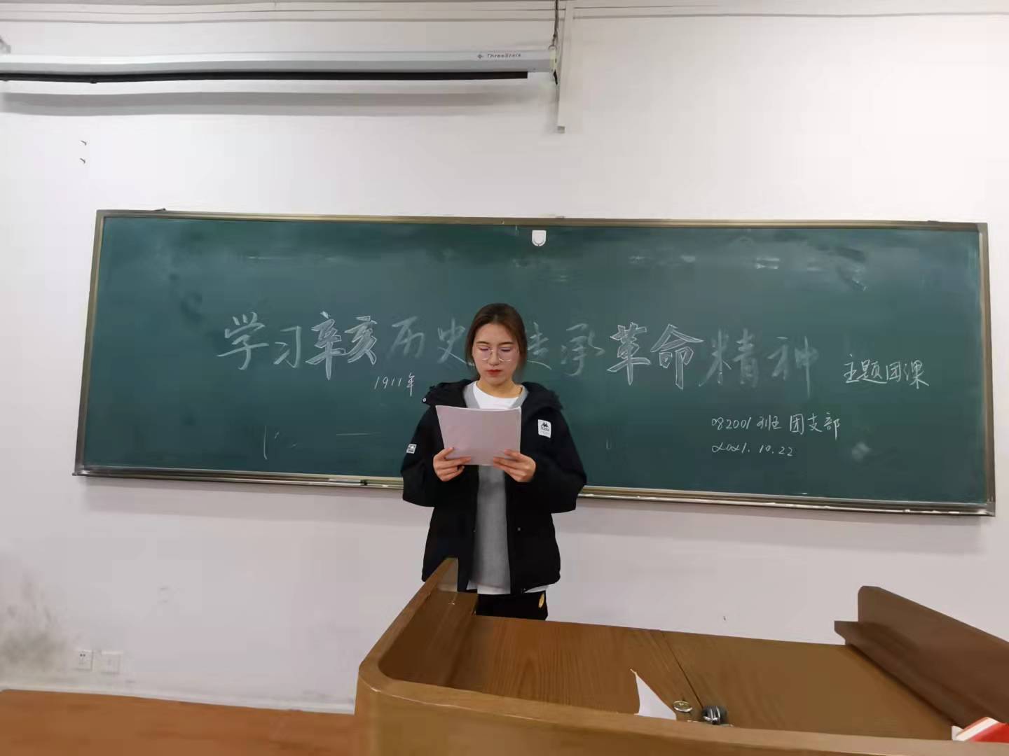 各班采取了多种多样的方式开展此次交流学习活动。082002团支部在团支书的组织下,同学们合唱了《打倒列强除军阀》、《唱支山歌给党听》与《社会主义好》等红色歌曲,互相交流了合唱感受和对辛亥革命的看法。通过歌曲合唱与交流环节,同学们更加深刻理解了这些歌曲在特定历史时期的特殊意义,让同学们更加感受到歌曲背后的革命精神。082004团支部于10月23日上午由李子荣(2020级本科生)带领参观了成人导航