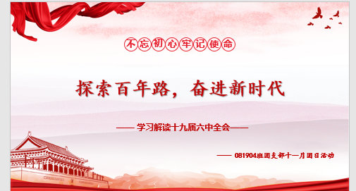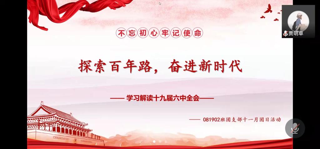 2019级各班团支部开展了主题为“探索百年路,奋斗新时代,聚焦十九届六中全会”的团日活动。