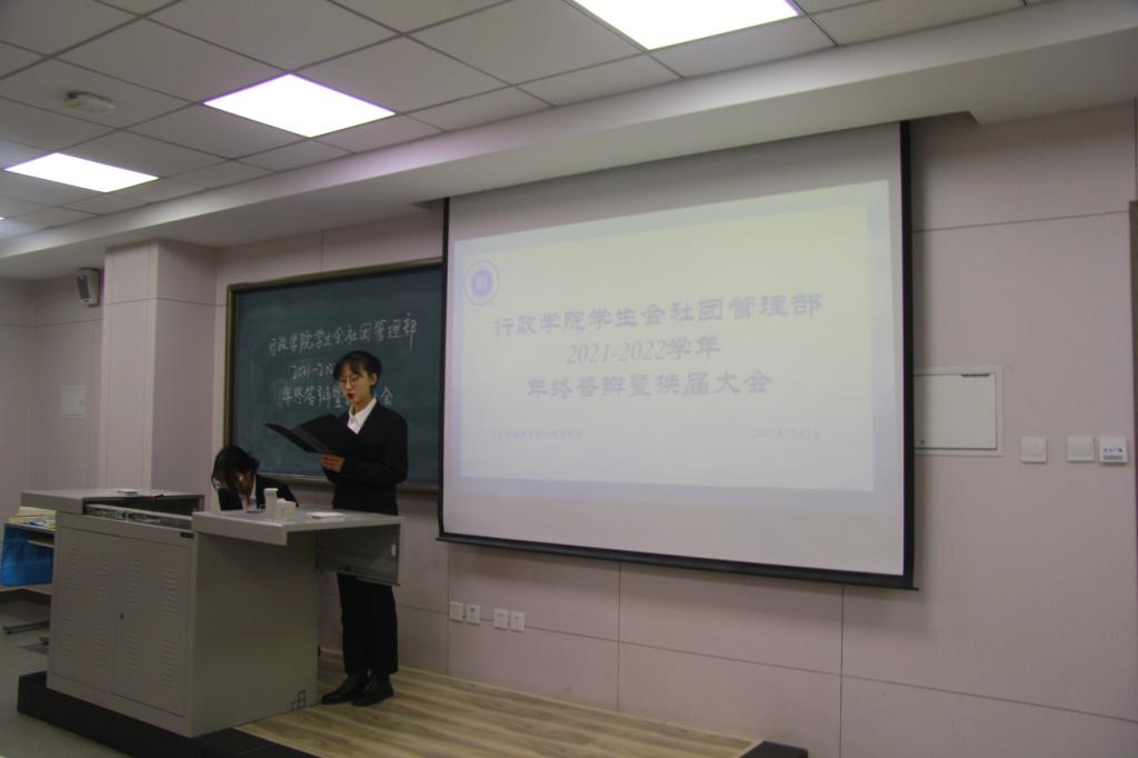 学生会社团管理部于中心校区第三教学楼303教室举行2021-2022学年社团年终答辩暨换届大会。本科生辅导员孙月及学院团学组织主要学生干部担任评委。