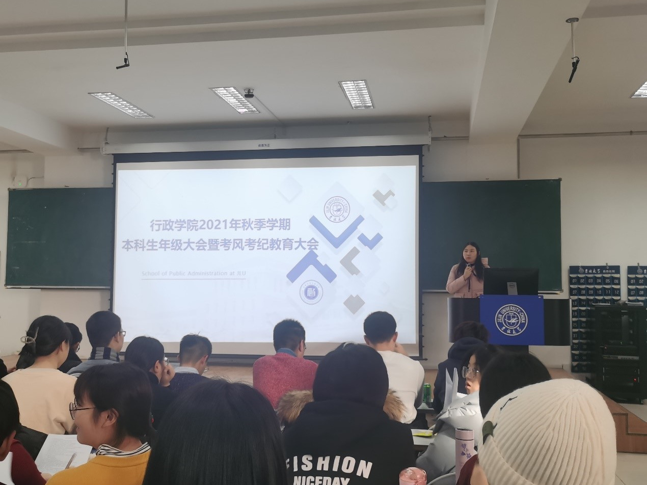 于第三教学楼第十二阶梯教室召开了2021-2022学年本科生年级大会暨考风考纪教育大会。学院党委副书记兼副院长、纪委书记张洁,教学办公室主任连永超,本科生辅导员高卓嫱、孙月出席本次大会, 2019级、2020级、2021级全体本科生参加大会。