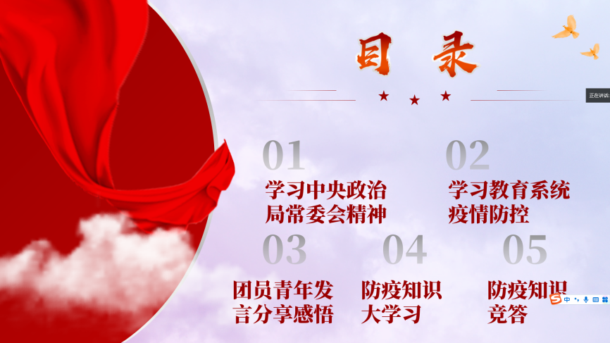本次团日活动于线上展开,各班团支部通过理论知识讲解,感悟交流分享,防疫知识比拼三个环节对中央政治局常务委员会贯彻执行全国人民代表大会防控疫情方针召开的会议进行深入解读与学习。首先,各班团支书为支部成员详细介绍了会议召开背景及会议具体内容,着重学习党中央对疫情发展形势的最新研判,分析了“动态清零”防疫政策的科学性和严谨性,端正了团员青年的抗疫心态。接下来,全体同学以理论学习材料为基础,学习了2022 年第4次全国教育系统疫情防控工作视频调度会议精神,强调教育系统内部疫情防控的重要性。在两项学习内容结束后,同学们热烈交流讨论,分享自己的学习收获与观点看法。郭长平(2021级本科生)表示经过此次学习,对疫情的认识上升到了更加广阔的全局性视角上,对疫情防控的各项部署也表示由衷的认可和支持;于淼(2021级本科生)结合了自己在疫情期间报名公寓志愿者的经历,表达了自己的信心决心,认为此次抗疫期间我国的疫情防控保持着全球领先的地位,充分彰显了中国共产党领导和我国社会主义制度的显著优势。刘雪莹(2021级本科生)则聚焦身边抗疫的“小角色”——寝室长,表达了“奉献者,角色无大小”的观念,以此表达对身边每一位默默贡献抗疫力量的同学和工作人员的感谢。