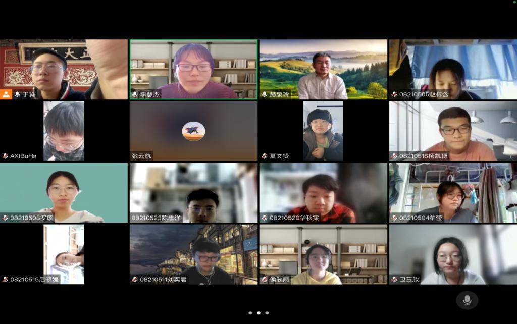 4月15日,2021级二班全体同学与班主任刘畅老师、许宁老师在线上相会。此次班会主题为“你我无恙,繁华与共”,由裴传明同学主持。同学们分别以才艺展示、故事分享、打卡汇报的形式分享了封寝期间日常生活。这一活动促进了同学之间的互相了解,激励整个班级坚持奋斗,受到了刘畅老师、许宁老师的称赞。之后,各位同学共同观看了《航拍中国第三季——吉林》纪录片,领略了吉林省广袤土地之间的风土人情。最后,刘畅老师结合纪录片的内容,分析了如何从日常现象中以专业角度建立分析框架,打通课堂教学与课外实践的教育场域。通过刘畅老师的讲解,同学们对专业知识的理解进一步加深。许宁老师也希望同学们在大学期间多多走出校园,欣赏美景,行万里路,深入感受社会科学类专业的独有魅力。