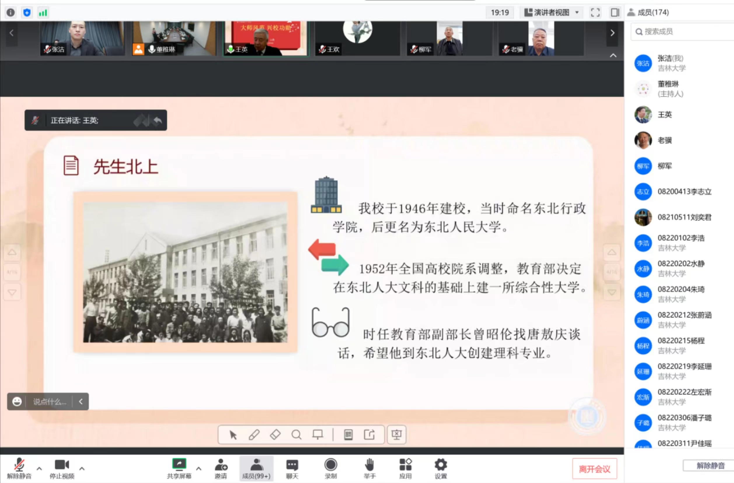 王英紧紧围绕习近平总书记关于科技创新和人才工作的重要指示精神,与广大师生共话校史教学相长,讲述了成人导航