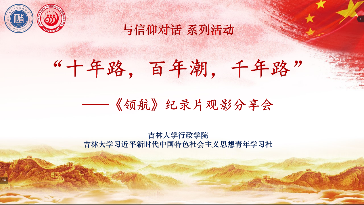 习近平新时代中国特色社会主义思想青年学习社于2022年11月6日上午在线上成功举办第三期“十年路,百年潮,千年路”——《领航》纪录片观影分享会。