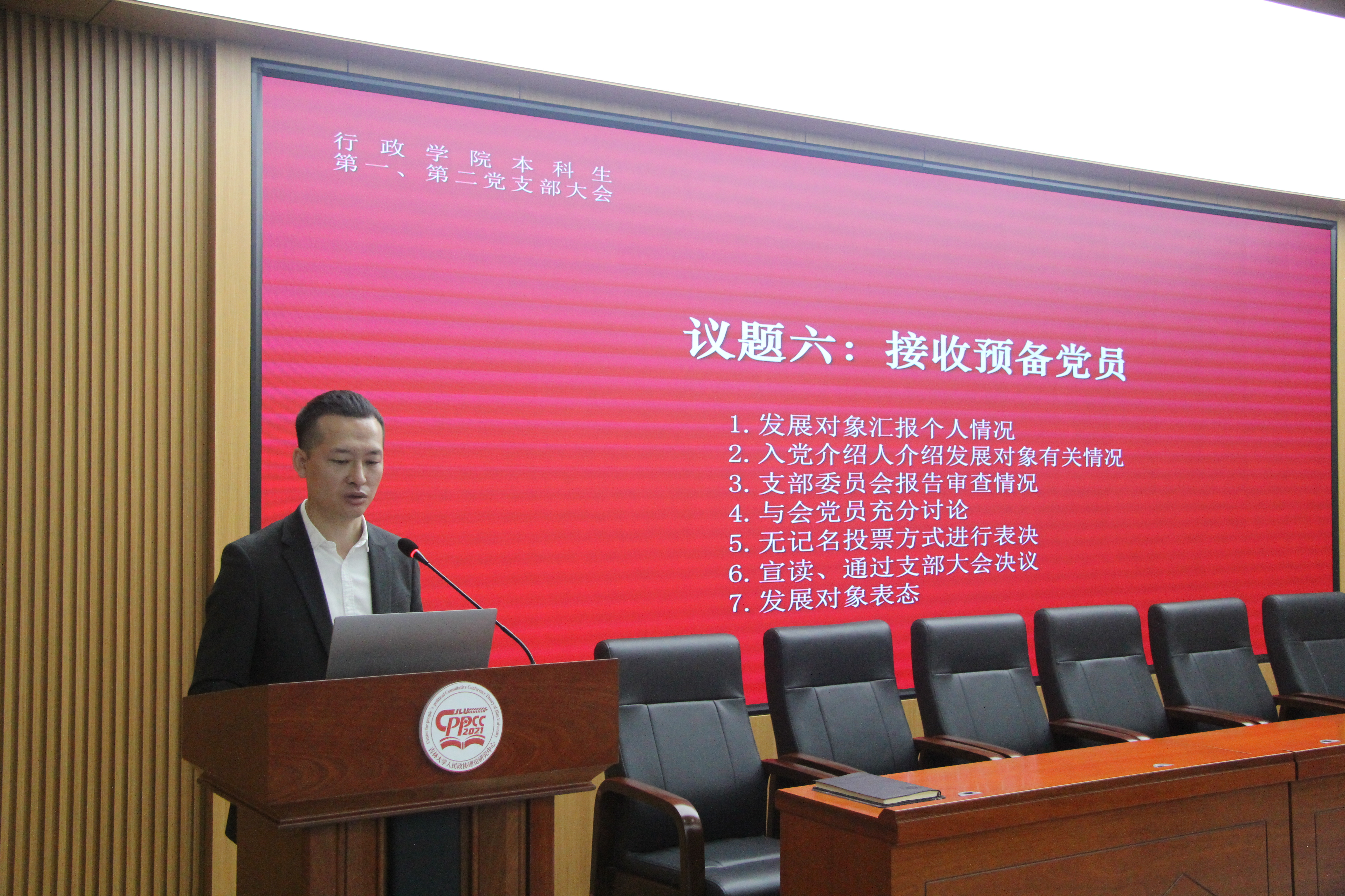 人民政协理论研究中心会议室召开本科生党支部大会。学院党委副书记兼副院长、纪委书记张洁主持会议。