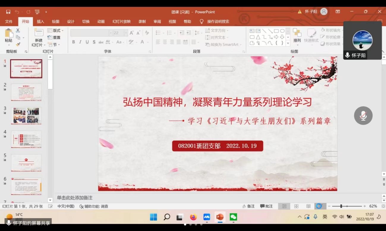 2020级各班团支部开展了“弘扬中国精神,凝聚青年力量”主题团日活动。