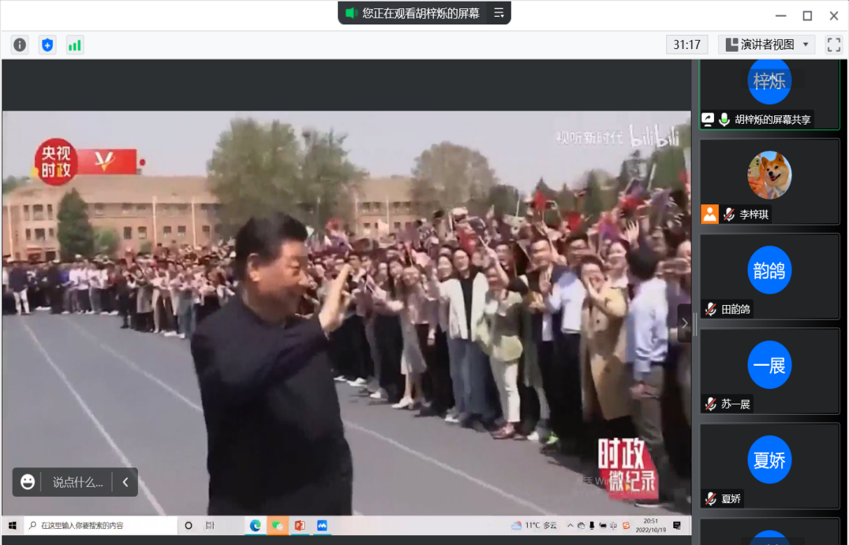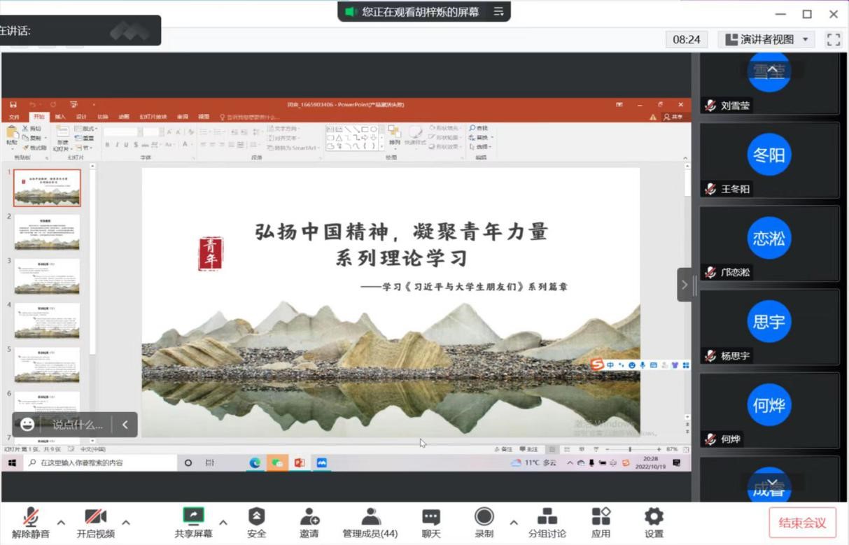 2021级各班团支部开展了“弘扬中国精神,凝聚青年力量”主题团日活动。各团支部于线上开展本次团日活动,其间同学们认真思考、积极参与,通过背景介绍、材料精读和感悟分享三个部分深入学习材料精神。