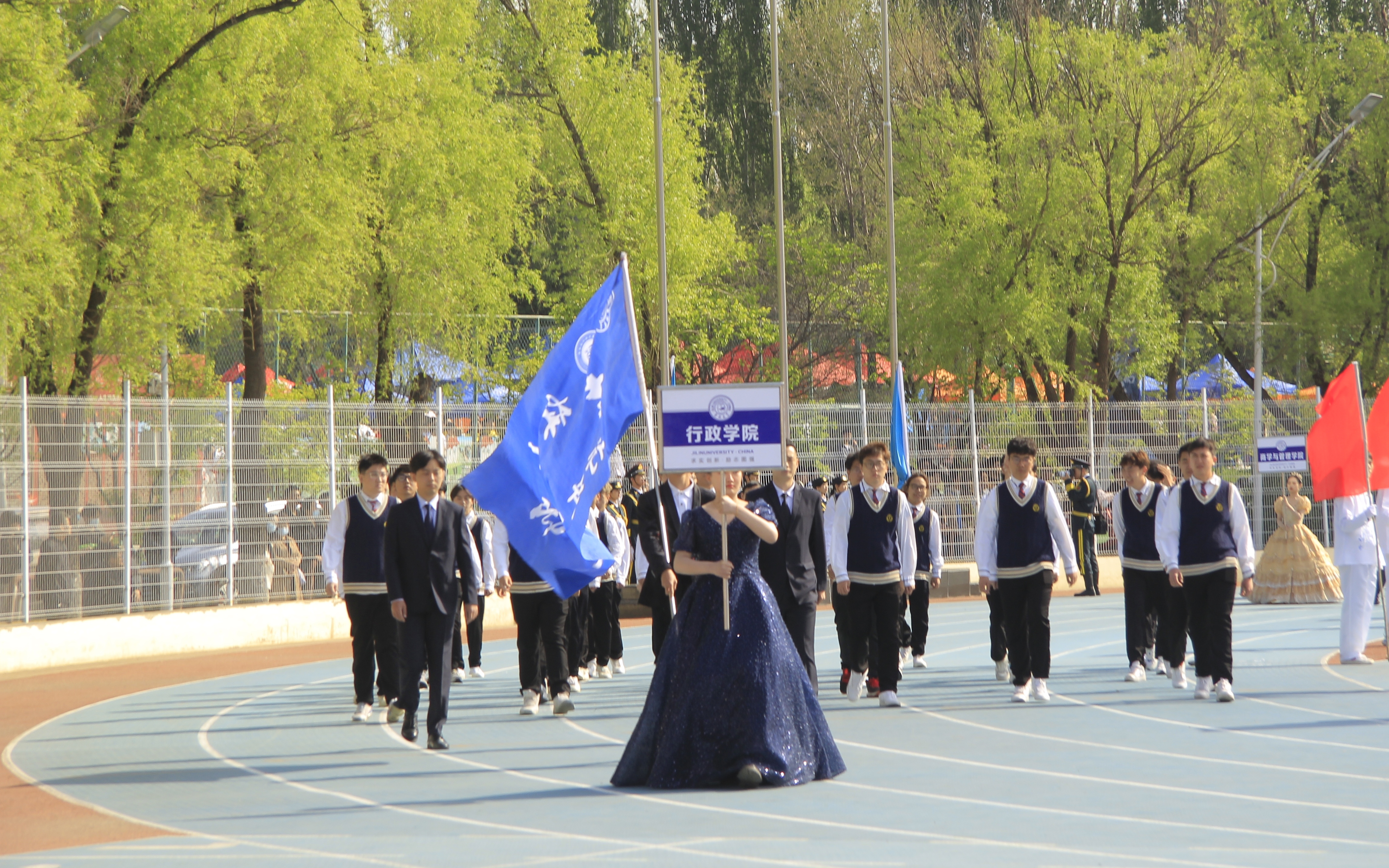 第六十一届田径运动会正式开始。各学院方队依次经过主席台接受检阅。成人导航