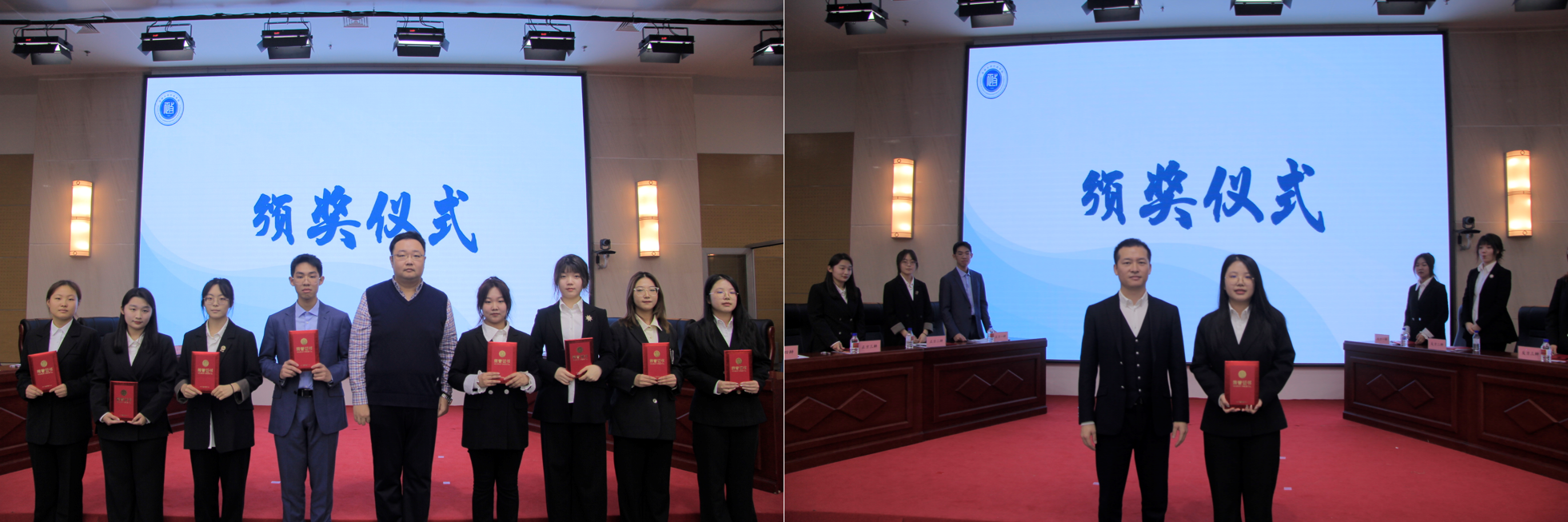 经过激烈的辩论角逐,正方队伍(2023级本科生赵逸熙、杨晴然、付一茗、胡瑞雪)获得了本次“行政论坛”辩论赛的冠军,反方队伍(2023级本科生周晗、齐书瑶、王婷、王楠)将亚军收入囊中,反方四辩王楠(2023级本科生)同学斩获“最佳辩手”称号。评委老师为获奖队伍和最佳辩手颁奖并合影留念。