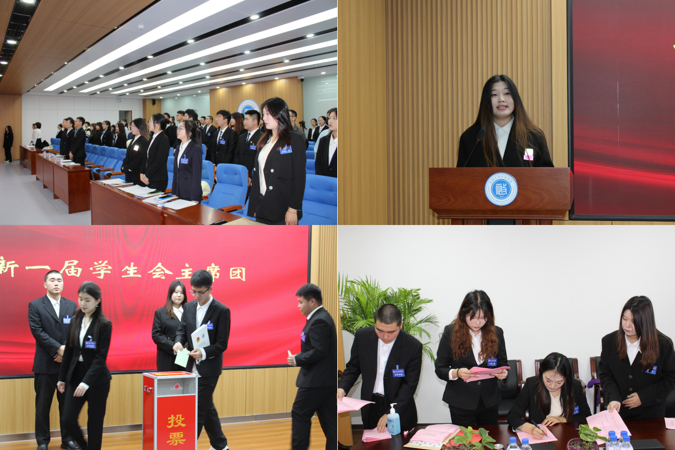 学生会主席团选举办法》;会议选举了新一届学生会主席团成员和2023年学生代表大会常任代表,2021级本科生刘寒、花钦妍、郝雨珊当选新一届学生会主席团成员。