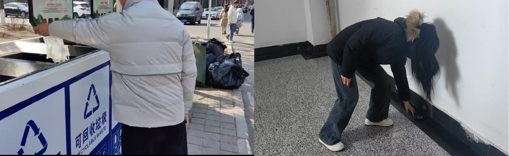 志愿者于校园各个角落,开启了一场别开生面的环保之旅。南苑草坪、北苑小径以及人流量较大的教学楼周边,志愿者们化身环保小卫士,细致入微地搜寻着每一寸土地上的垃圾。无论是随风飘落的纸屑、被遗忘的塑料瓶,还是隐蔽在草丛中的烟蒂,都未能逃脱他们的“火眼金睛”。
