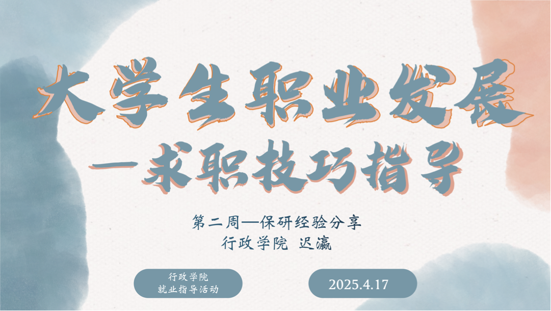 4月17日,迟瀛就大学生就业相关问题进行讲解,强化同学们对就业选择的认知。高天姿、叶兆东、姚楠、杨晨、邢佳琳、刘寒(2021级本科生)分别从保研经历、个人经验、准备工作和复习要点等方面进行经验分享,引起了同学们的广泛共鸣和深刻思考。