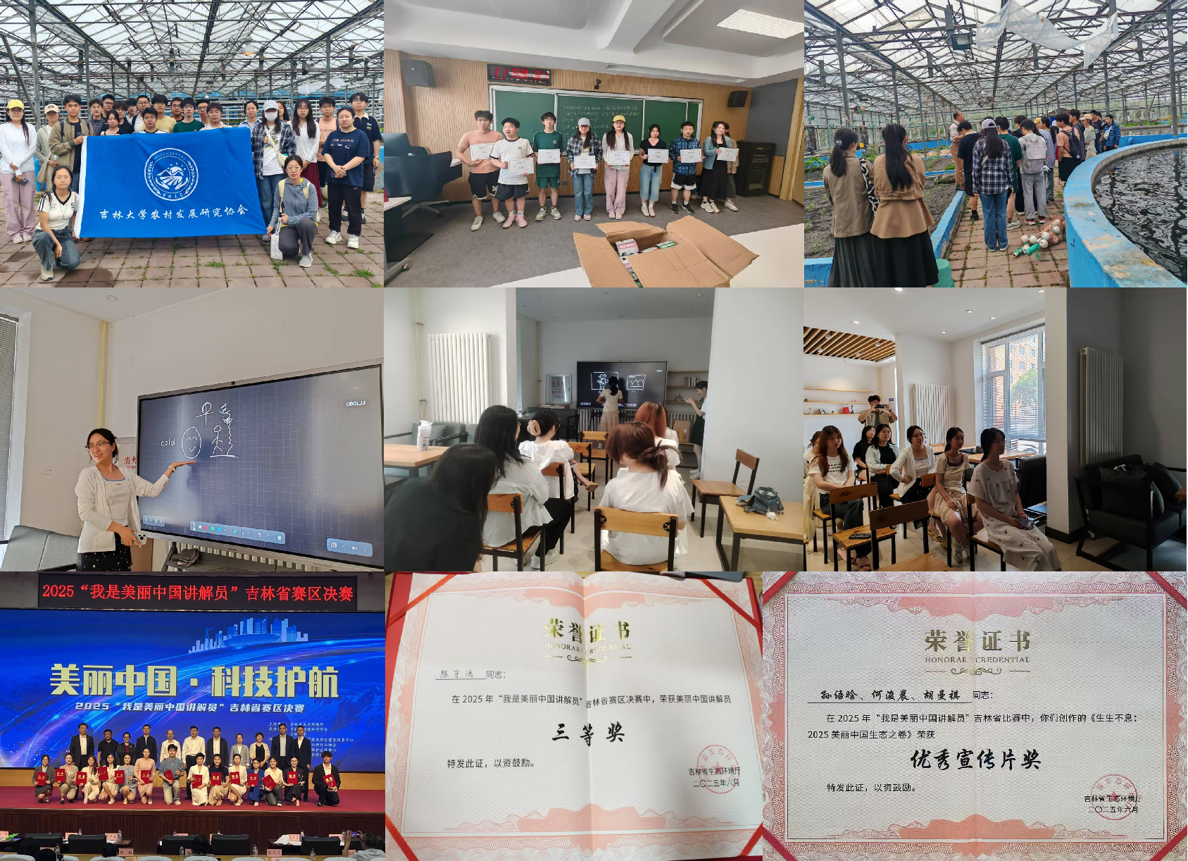 和平校区鱼菜共生基地参观,探索智慧农业的奥秘,感受生态科技的魅力。围绕“科技如何赋能绿色农业”等主题,聚焦中央一号文件及家乡地区农业发展故事等话题,同学们开展研学分享会,踊跃发言、贡献智慧。2025“我是美丽中国讲解员”吉林省决赛结束,我院2024级本科生南琪、陈宇涵分别获得省级三等奖,学院还获得优秀宣传片等荣誉。同时,学院在大学城一站式社区举行“寝”春涌动·“室”放新光寝室文化节,吸引众多同学的积极参与,现场气氛热烈温馨。6月4日,学院团委举办“行践无疆·政启新航”暑期实习实践基地宣讲会,各实践基地代表就实习环境、工作内容、自我提升等内容进行介绍,希望同学们在即将到来的暑期实习实践中躬身力行、锤炼本领、增长才干,充分展现行政学子的青春风采与时代担当!