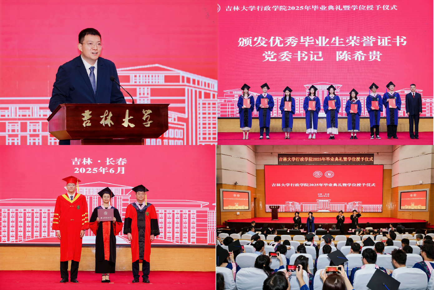 政治学学科学位评定分委员会主席张贤明、院长马雪松为毕业生拨苏正冠、颁授学位。各年级学生、青年教师代表纷纷发言,表达感激与敬意;院长马雪松勉励学院“吉行”军们“整理行囊,带着学校学院的印记,以理想为灯、以奋斗当楫、以创新作帆,奔赴星辰大海”。青春激昂的音乐中,毕业生们久久徘徊,在一声声祝福中拍照留念,一场盛大的告别,怀揣着“求实创新、励志图强”的理想,成为青春相册里永不褪色的一帧。