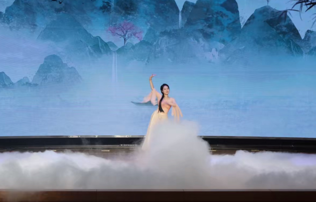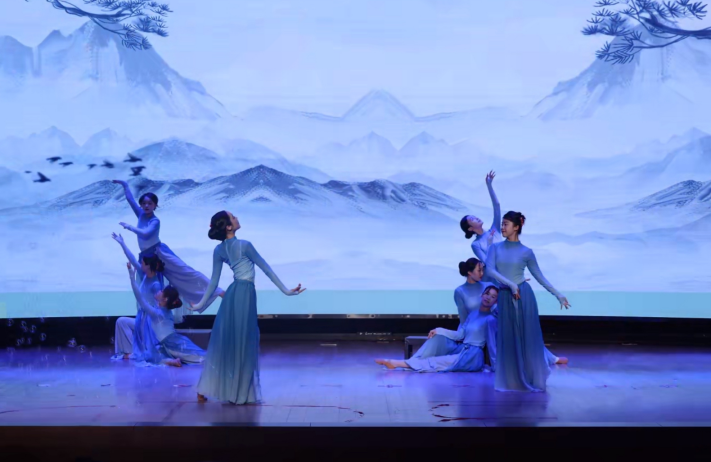 晚会由清逸中国舞社团带来的改编古典舞《喜上枝头》开场。源于2025年春节联欢晚会节目《喜上眉梢》的灵感,以国画中的喜鹊登枝为原型。舞者科目通过身体的舒展、旋转、跳跃等动作,生动地模拟出喜鹊在枝头嬉戏的姿态,将喜鹊的俏皮展现得淋漓尽致,更是象征着吉祥与好运,寓意着“喜事临门”。