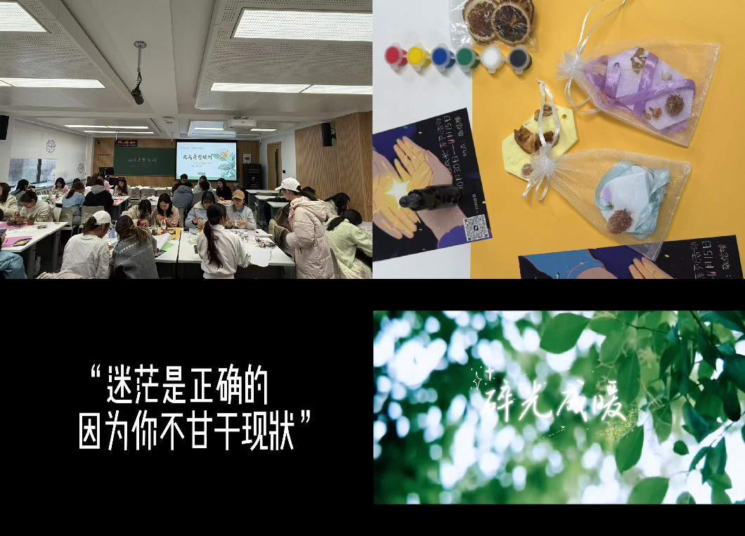 11月,学院顺利完成本科生、研究生心理普查,了解同学们的整体心理状况,帮助同学们提升心理健康水平。同时,按照学校学生心理健康指导中心工作安排,学院积极开展2025年“朋辈协力·心理成长”系列活动,分别举办“政苑疗愈绿洲——‘以劳健心’减压工作坊”和“镜见心途”——心理成长微电影创作”本研联合立项活动,将“以劳健心”理念融入心理健康教育,帮助同学们在繁忙的学习生活之外提供了一片休息的绿洲,切实提升了心理弹性与幸福感。同时,通过手工创作和微电影创作等方式,将心理健康教育与艺术创作相结合,为学生提供了一个情绪疏解和才华展示的平台,在深度协作中促进了朋辈联结,营造了关注心理、积极向上的良好氛围。