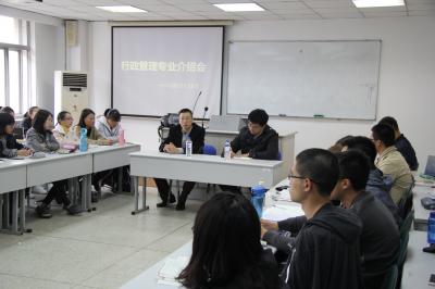 会上,刘雪华教授从专业定位、专业研究与个人发展三个方面向同学们作了讲解,并热情解答了同学的疑问。本次介绍会密切了师生交流,使同学们进一步加深了对行政管理专业的认识,使得同学们今后的学习目标和发展规划更为明确。(媒体中心通讯员:刘可任)
