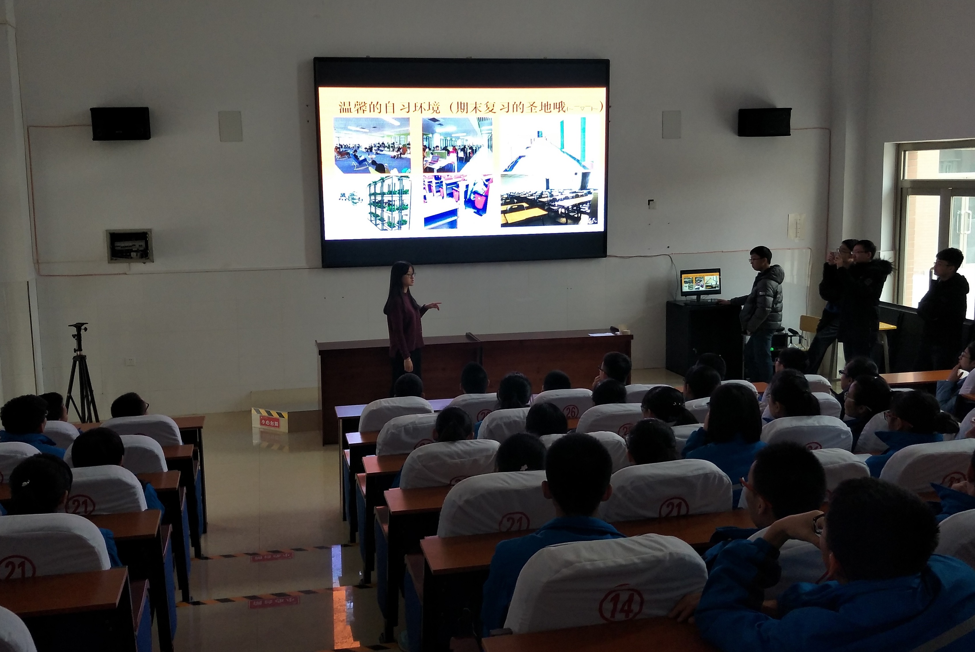 在信息咨询问答环节,刘一同(2016级本科生)小组遇到了高中同学们提出的生活问题 ,例如:“吉大食堂的饭好不好吃?”“吉大校园里的篮球场多不多?”“吉大的教学楼什么样?”等等,组员们耐心解答并通过一幅幅图片向大家展示了吉大的瑰丽风光,鼓励学习成绩优秀的同学们踊跃报考成人导航