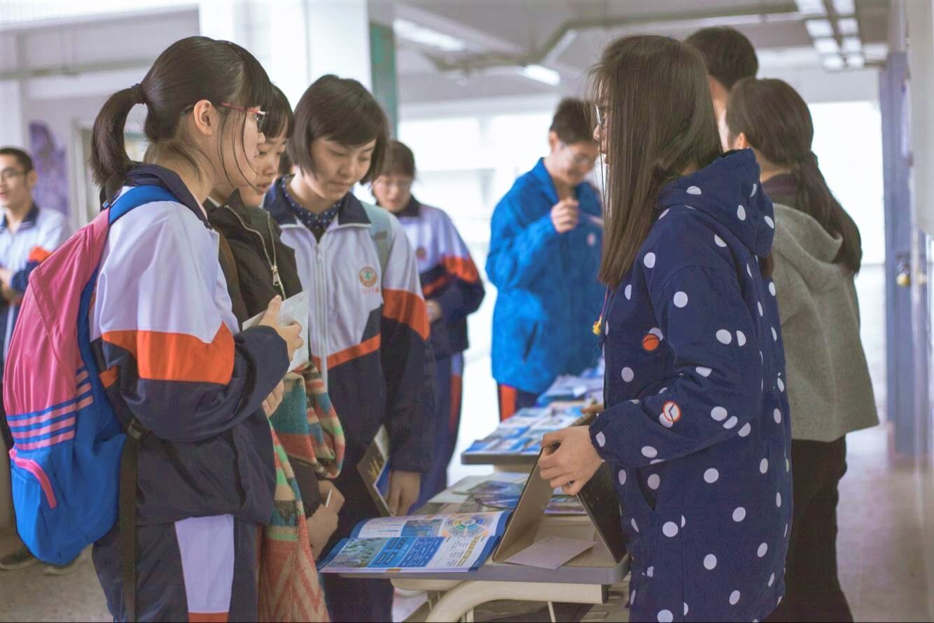 在经验交流环节,高三同学们踊跃提问。张蒙(2016级本科生)小组与同样来宣传的哈尔滨工业大学、北京理工大学等兄弟高校的同学们“同台竞技”,针对高三同学们提出的自主招生、历年录取分数和报考要求等问题进行了详细解答,并分享了自己的学习方法和志愿填报经验。