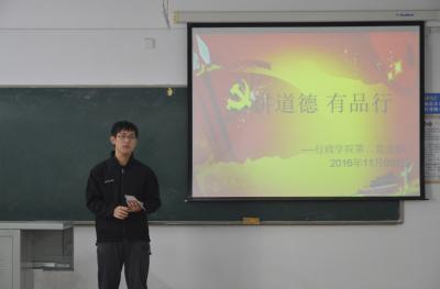 本科生第二党支部于前卫南区第三教学楼407室举办了“讲道德、有品行”主题学习交流活动。裴月莹(2014级本科生)担任本次活动主持人,2014级本科生党员、预备党员和入党积极分子参加了本次活动。