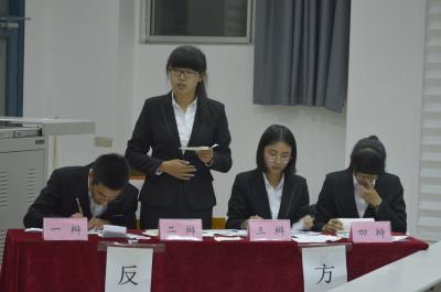 主持人郁心遥首先向参赛队员、比赛评委以及在场观众宣读了比赛规则以及比赛程序。本次辩论赛由两场辩论组成,辩题分别为“新常态下财政应更注重开源还是节流”和“当前国情下政府应更支持社会养老还是家庭养老”。