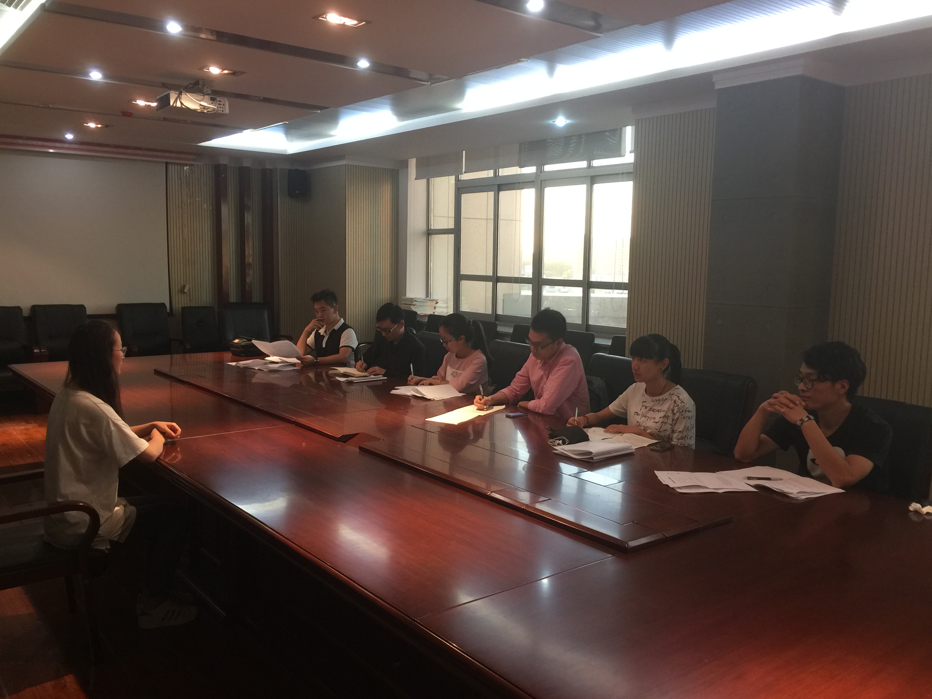 面试于26日晚17时准时开始,本次换届面试采取各学生组织单独面试成员的方式,有意愿参加换届竞选并完成25日笔试环节的2015级学生干部按照部门及姓名排序依次进入所在组织的会议室开始面试。每位学生的面试都由自我介绍和面试官提问两个部分组成,面试官们针对竞选学生的工作态度、工作方法、工作设想等方面进行提问。而在场地外等候的学生们也正进行着紧张的准备工作。19时,换届面试全部结束。