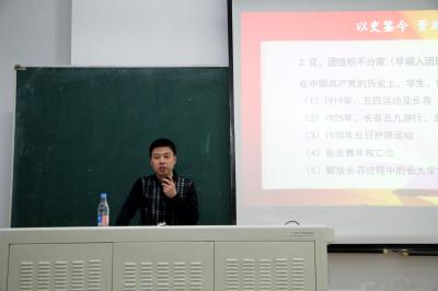 大力邀请下,中共长春市委党史研究室宣传教育处负责人陈磊于5月3日在吉林大学前卫南区三教十三阶给学生们带来了一场精彩的讲座。本次讲座是在中共长春市委党史研究室的支持下,由2015级1班团支部组织承办。