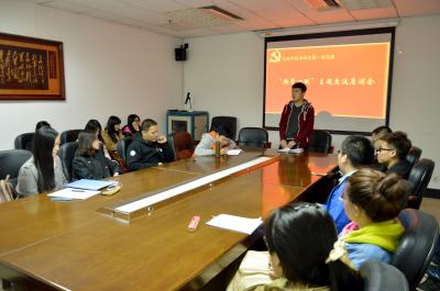 2013级本科生党支部于4月8日在前卫南区东荣大厦1202会议室举办了“两学一做”主题交流座谈会。2013级全体党员参加了此次座谈会。座谈会由2013级本科生党支部负责人任建国主持。