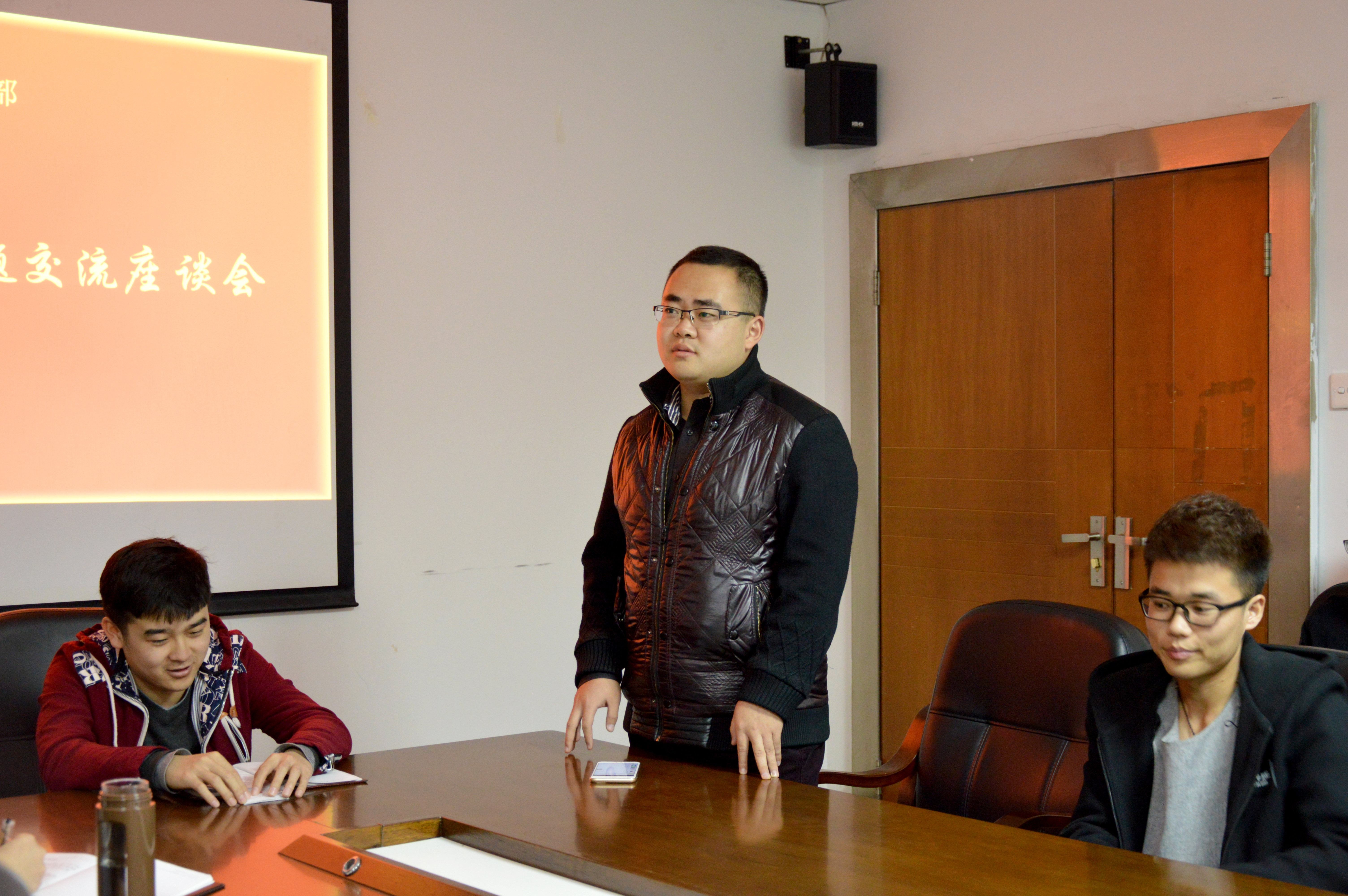 座谈会开始后,任建国先向与会人员传达了“两学一做”精神,安排了会议秩序并介绍了会议内容。首先进行的是本级党支部组织委员以及宣传委员的选举。选举以民主投票的方式进行,最终郝瑞琪和刘航宇分别以高票当选为2013级党支部组织委员和宣传委员。随后进行的主题交流,任建国首先讲述了自己这段时间学习党章、党史的感悟。他认为大学生党员要认清自己的身份,将为人民服务以及服从党的领导落实到具体实践中,大学生需要正确理解党的纲领与政府改革的关系,为实现中国梦做贡献。随后的自由发言中,党员孙诗琪率先发言。她认为我们大学生应该积极响应党中央的号召,用“三严三实”来规划自己,要帮助他人,争创先进,在党的领导下变得更优秀。之后,郝瑞琪、刘航宇等同学分别发表了自己的见解。最后任建国在总结发言时强调:入党是一件严肃的事情,当我们成为一名党员时,心中就应该有党、有人民;社会很复杂,但党员要时刻清醒,知道应该做什么,不该做什么;要努力学习,端正态度,认真学习党章党律。