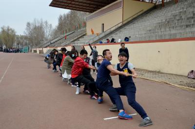学生会体育部于4月15日在前卫南区田径场开展拔河比赛,2014级和2015级每班派出十六人组成班级代表队参加了比赛。体育部前任部长李莎莎(2012级)担任比赛裁判。