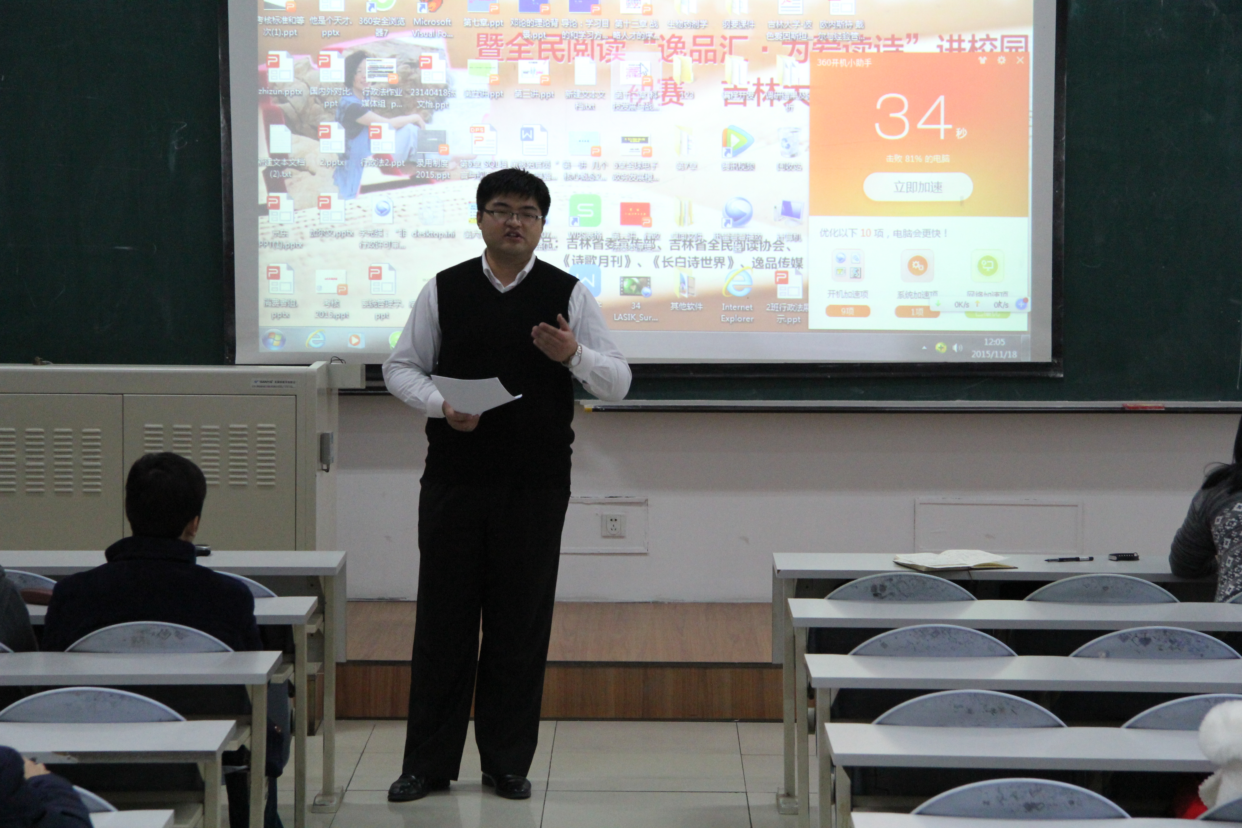 在18日召开的2013级年级大会中,史慕华首先向在座本科生分析了当前的就业形式,勉励同学们注意学习能力的培养和创新能力、思维能力的提升,希望同学们能结合自身定位与目标,结合自我环境与就业形式做好就业规划。同时,史慕华还就女生就业形势问题做了详细分析。接着,她提到学院为本科生推荐了合适的实习岗位、模拟公务员大赛等锻炼平台,并将在不久后召开成人导航