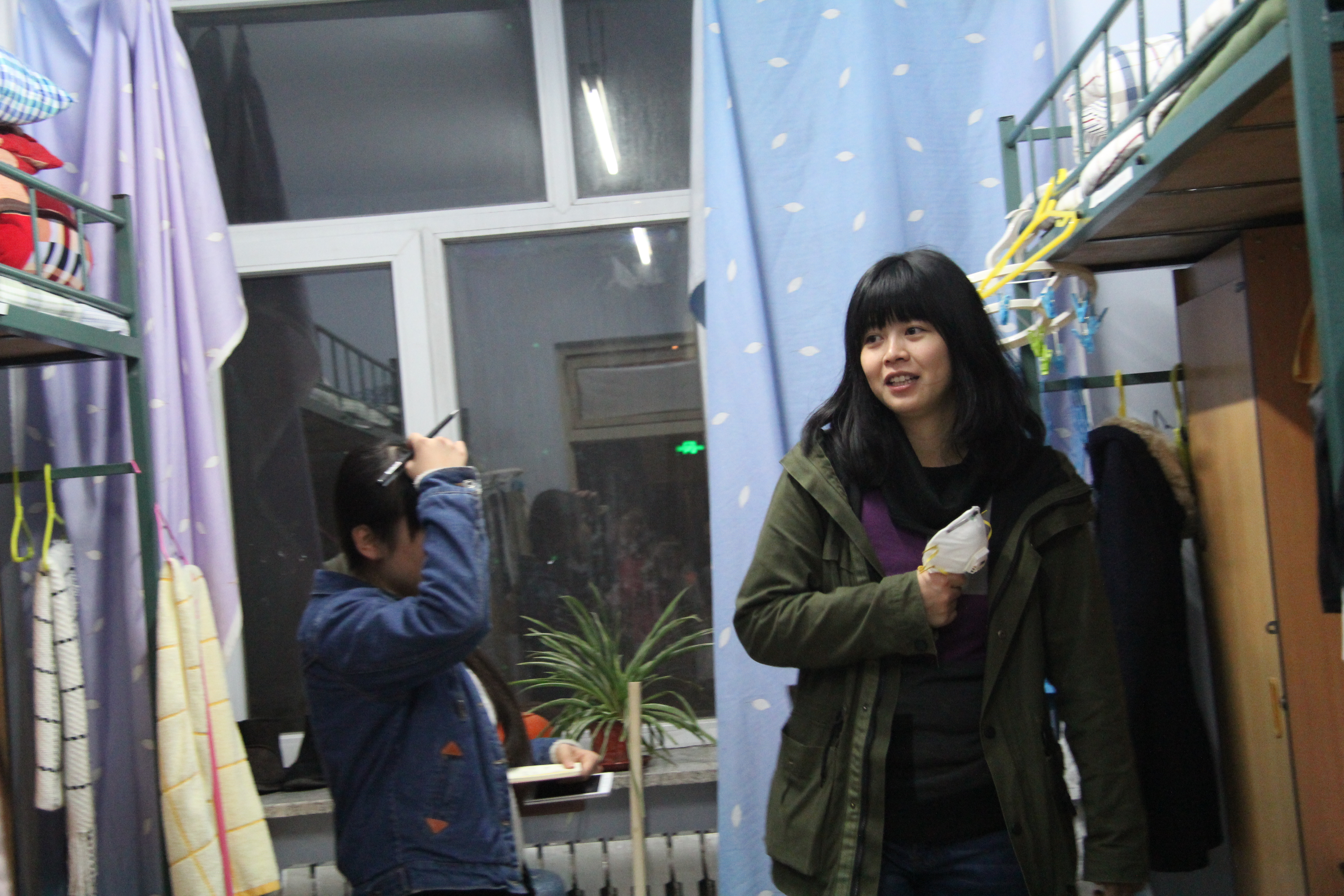本科生辅导员曲畅竹及学生会生管会成员对2015级学生进行了查寝活动。
