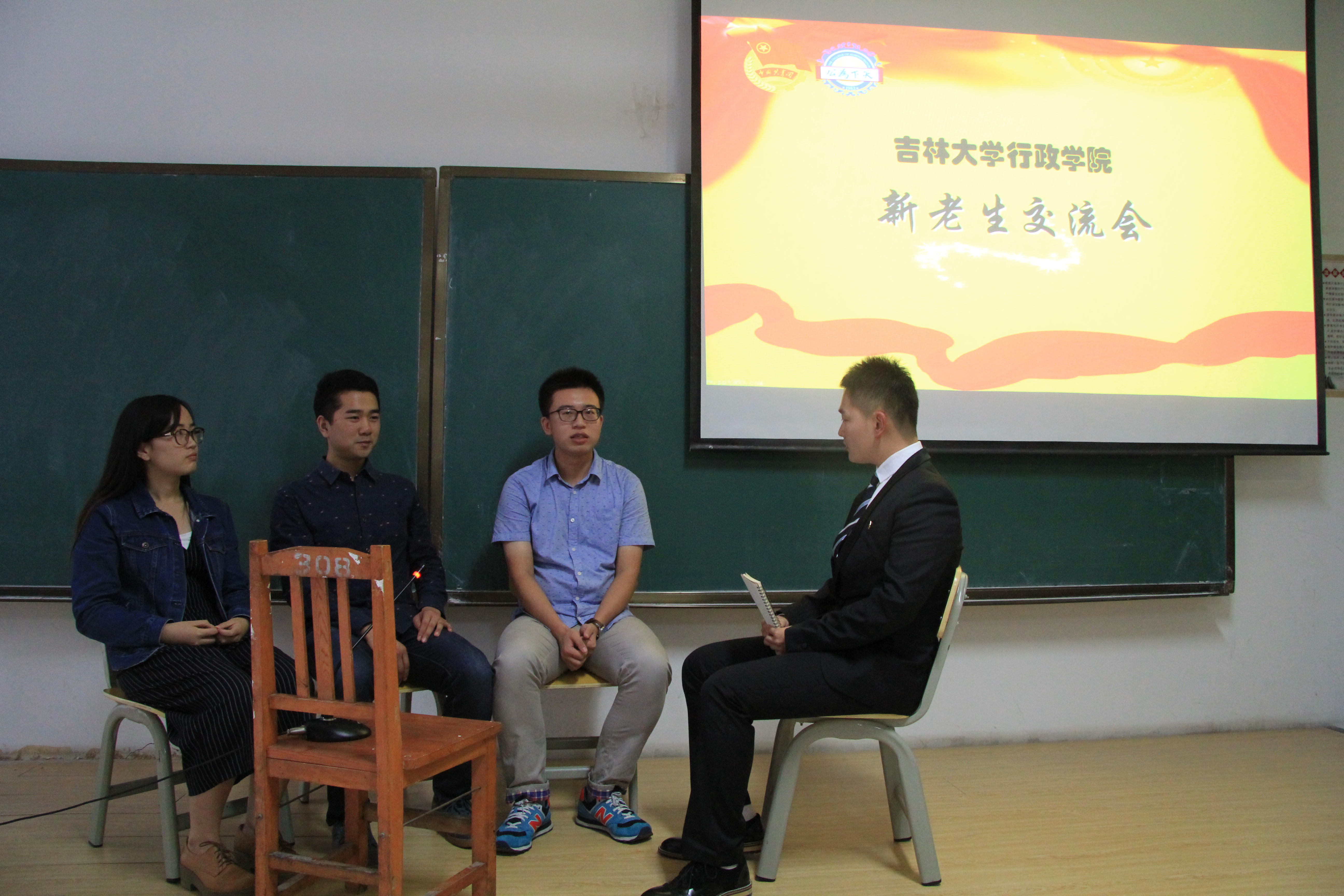 活动伊始,由代铭浩介绍了本次交流会的目的,希望新生可以从中有所收获。随后播放了团委、学生会、宣传媒体中心、《行政之光》杂志社、大学生发展指导中心学院五大学生组织的纳新宣传视频,生动有趣的视频使新生收获欢乐的同时,也使新生们对各大组织有了初步的了解。短暂的休息之后,新老生交流会步入正题。首先,2012级优秀学生代表成方圆向新生介绍了自己的学习经验,她建议同学们在大学期间多多尝试各种经历,以求无悔的大学生活,同时还分享了自己的出国前期准备经历。随后,被保送至中国人民大学的万辰光(2012级)与同学们交流了自己的保研面试经历,并告诉大家要去体会吉大的另一种风情,努力在正确的时间做正确的事。此外,他建议新生多读书,以增加交流的谈资。最后,获得直博资格的原团委副书记夏海洋(2012级)通过学习、工作、活动和工公益四个方面,结合自身经历告诉新生们应该如何平衡各项的时间,充实地度过大学四年。在随后的访谈环节中,由新生自由提问,三位优秀学生代表根据自己的经验来一一详细作答,解答了新生们的许多疑惑。活动在全场的掌声中圆满落幕。