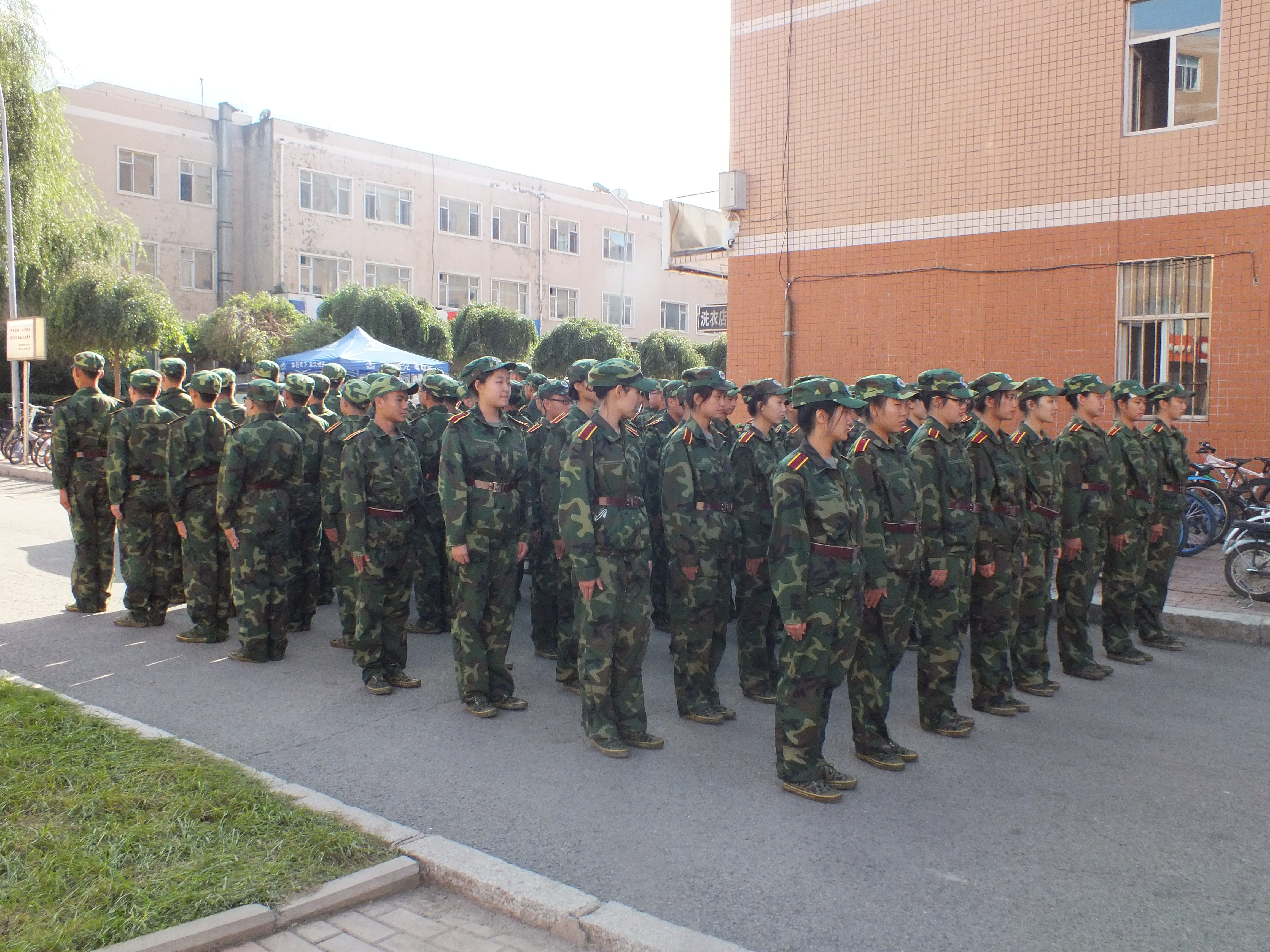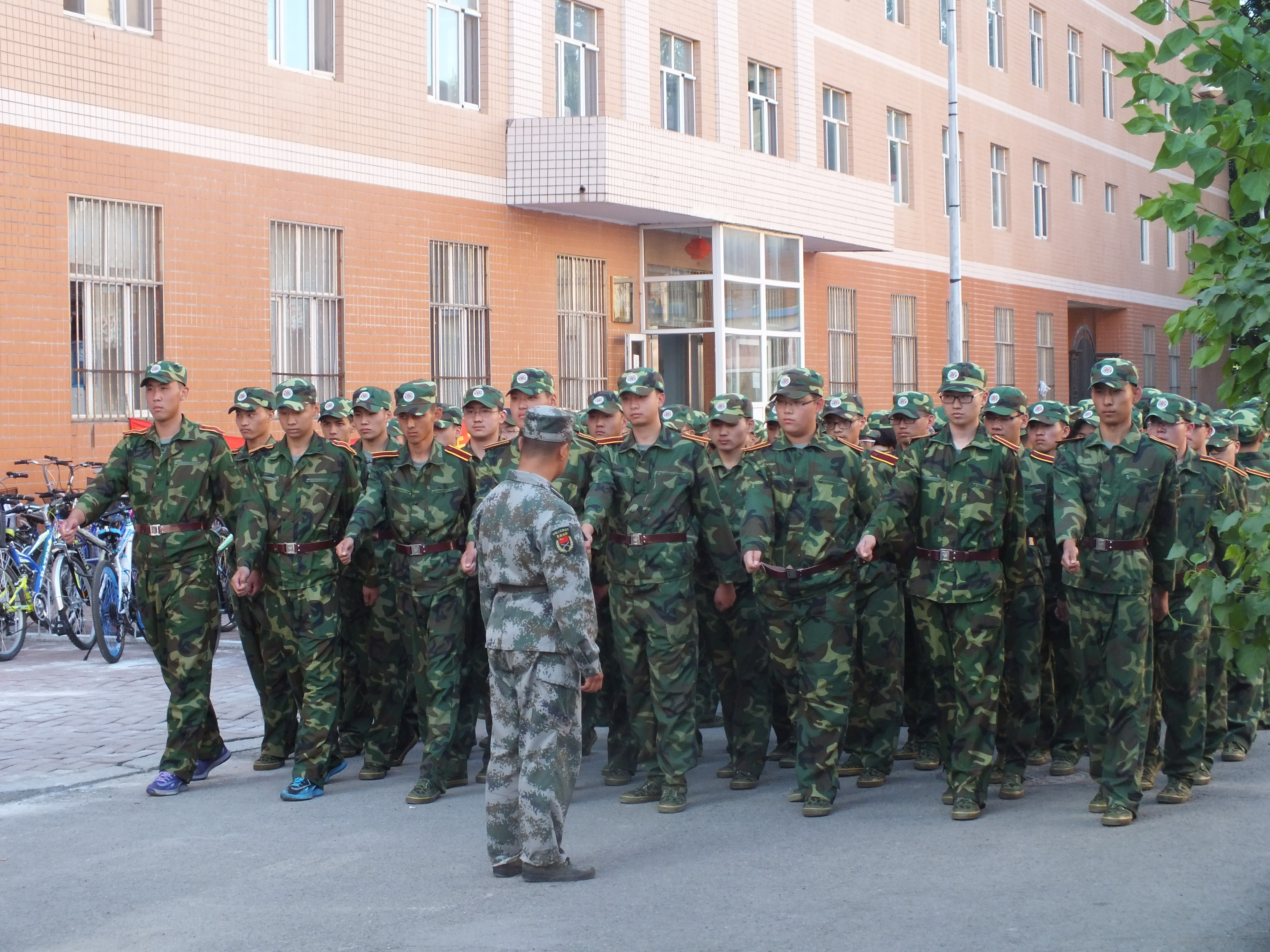 2015级新生被编在一营三连,新生在连长的带领下来到训练场地,军事训练在教官的带领下有条不紊地进行着。军训刚刚开始,未习惯高强度训练的同学们在烈日下面对繁重的任务未免疲惫不堪,动作尚显生疏散乱。但同学们都很刻苦,并未松懈,动作也愈发标准整齐。