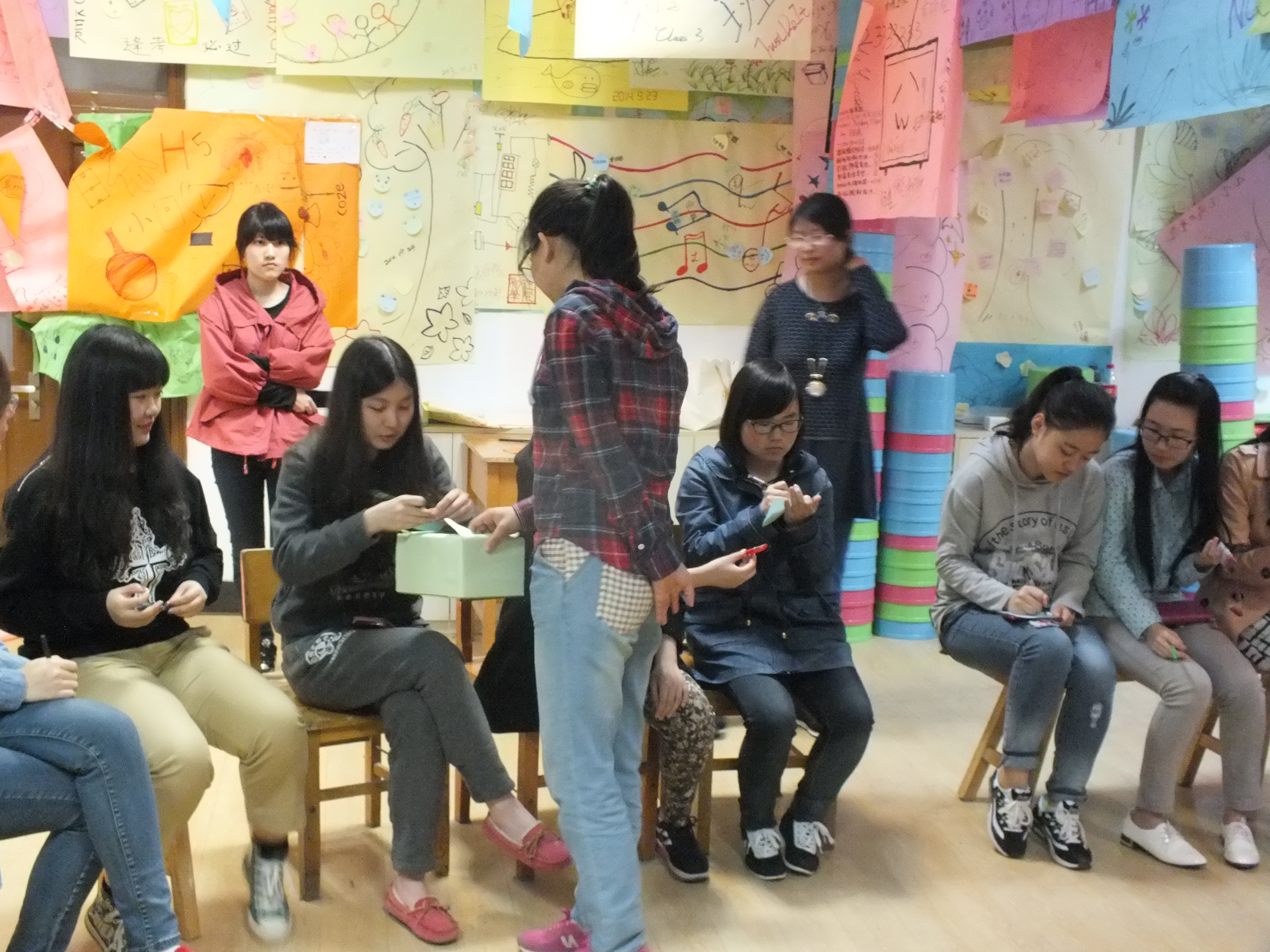 学生会心理健康部统一组织,2014级四个班的心理委员何雨薇、叶家明和容莹、李婷具体主持实施。本次活动共举办两场,分别由一、二班和三、四班的同学参加。在活动的游戏环节中,以“传手帕”为主要开展形式,手帕在大家的手中快速地传来传去,直到主持人喊一声“停”,手帕在手的同学就要出来为大家表演一个节目,或随机回答同学们在纸上写下的问题。在游戏环节结束后,同学写下了参与本次活动的感悟,并对今后心理活动的开展提出了建议,统一交给各班心理委员。活动的最后,主持人向同学们发出号召,鼓励大家把学习生活中所遇到的困惑与问题通过网络的形式发送到学院的心理邮箱,由心理健康部予以心理指导。
